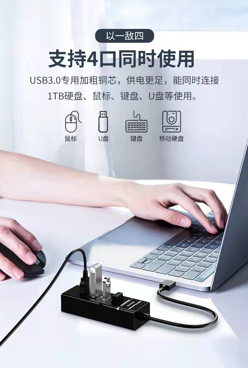 严选 多合一3.0扩展器usb分线器高速3.0集线器usb分线器电脑扩展坞30cm