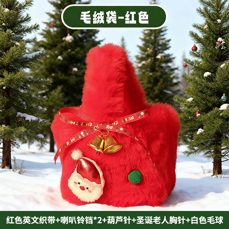 【氛围感神器❗️平安果毛绒袋】创意圣诞毛绒袋,毛绒材质手感柔软细腻,装满惊喜的铃铛礼物袋,饰品配饰用品铃铛创意平安夜diy袜子礼物袋QQ