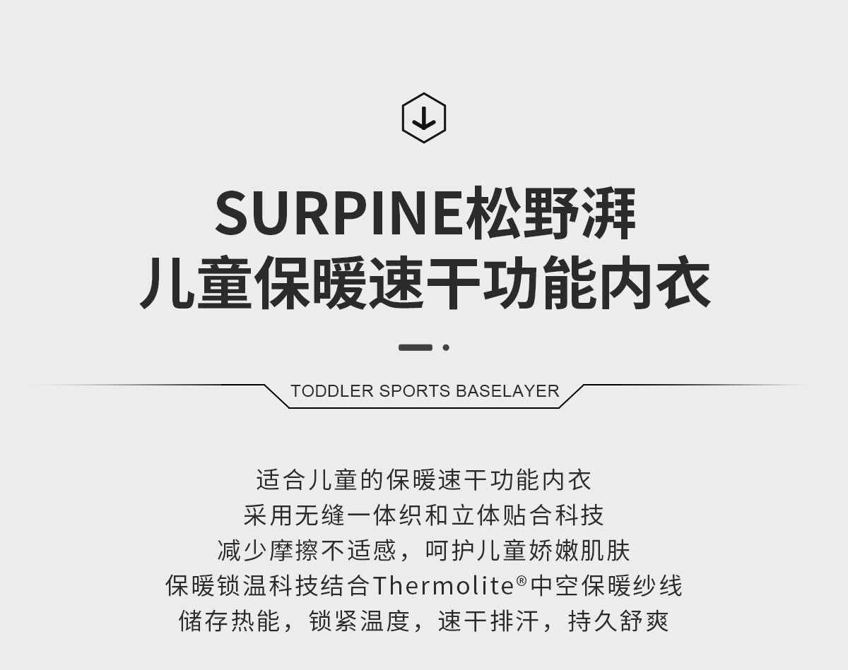 【六折特卖】SURPINE松野湃滑雪速干衣男女童儿童保暖内衣户外运动贴身打底衣小童