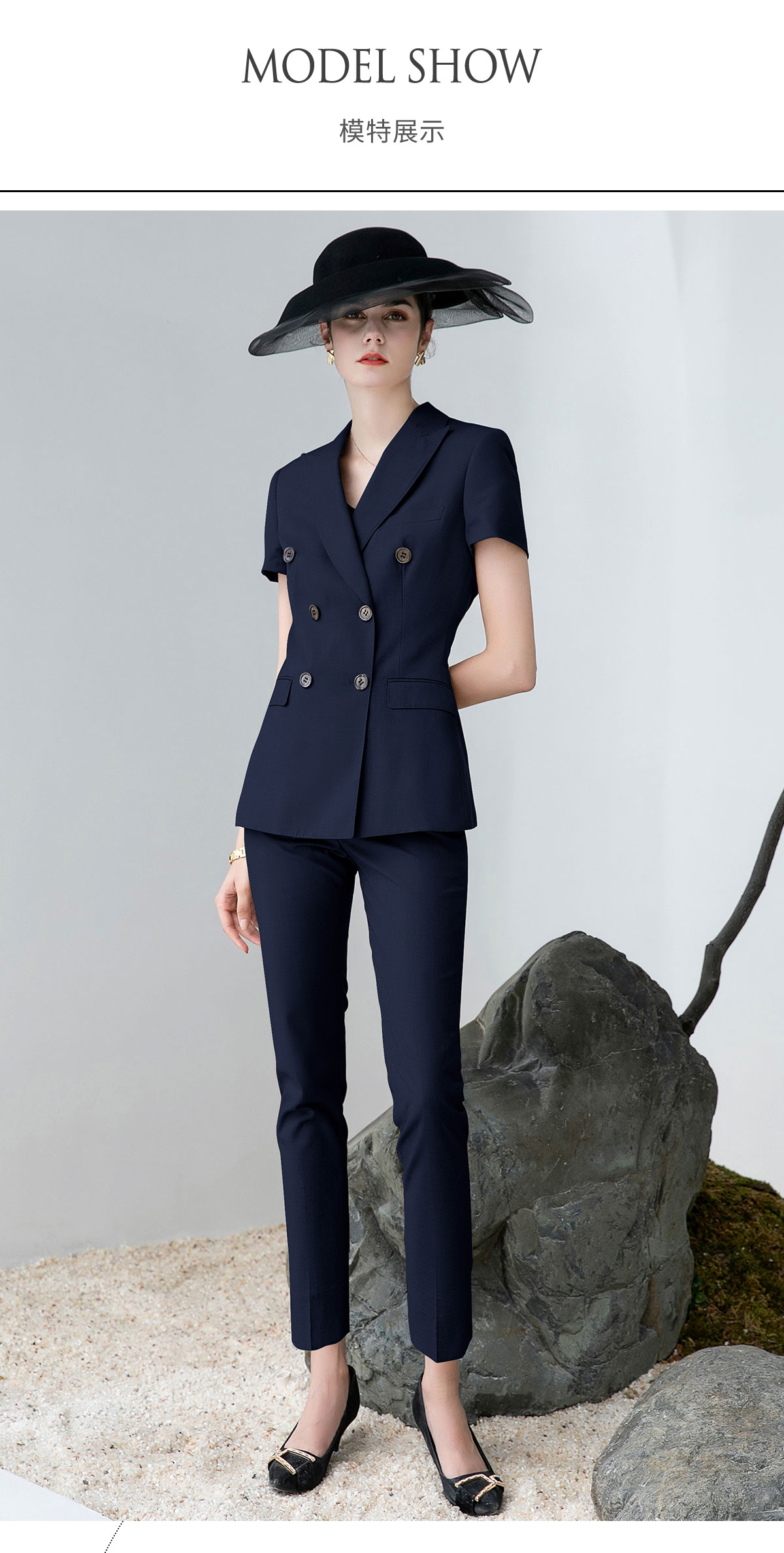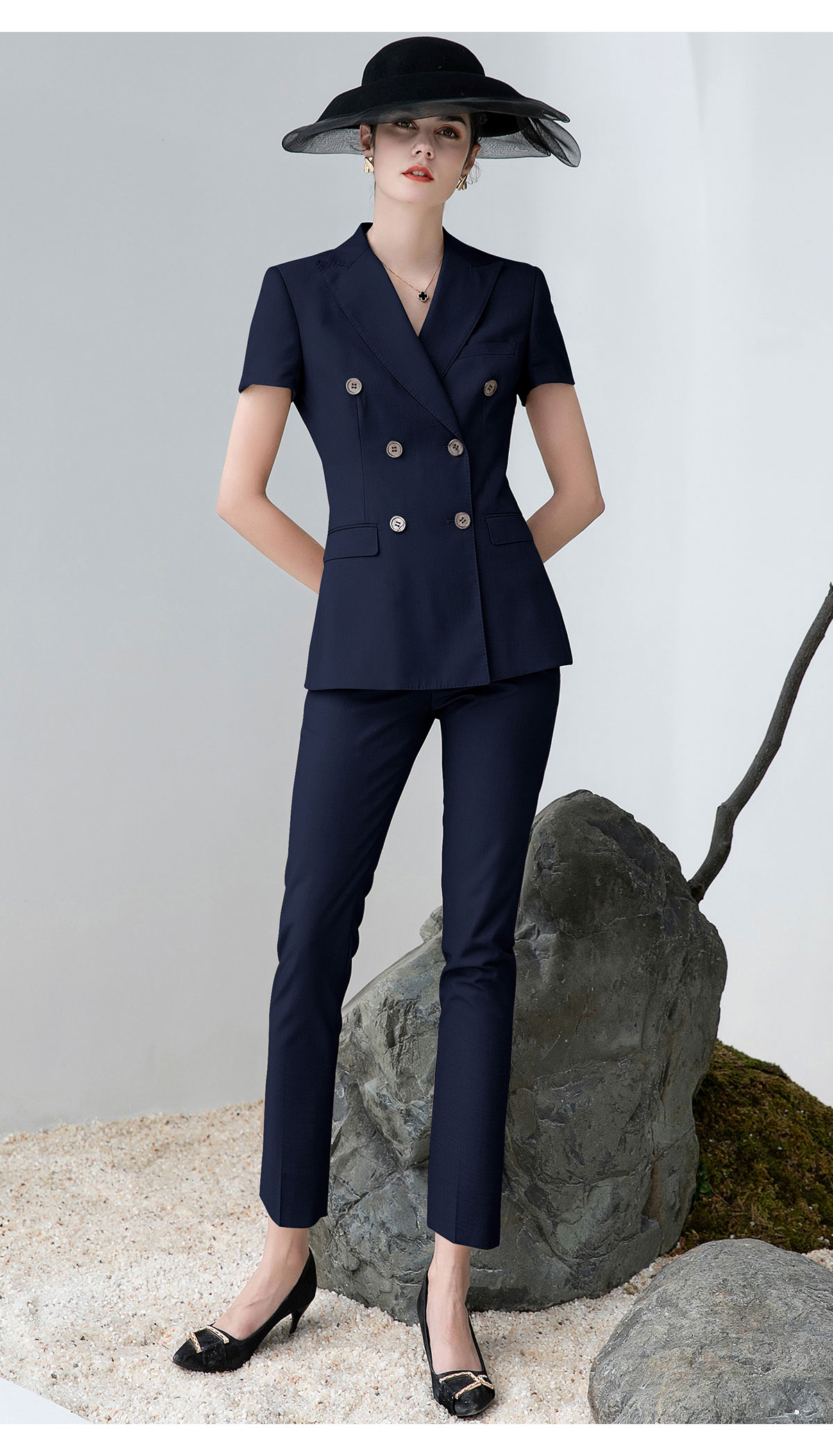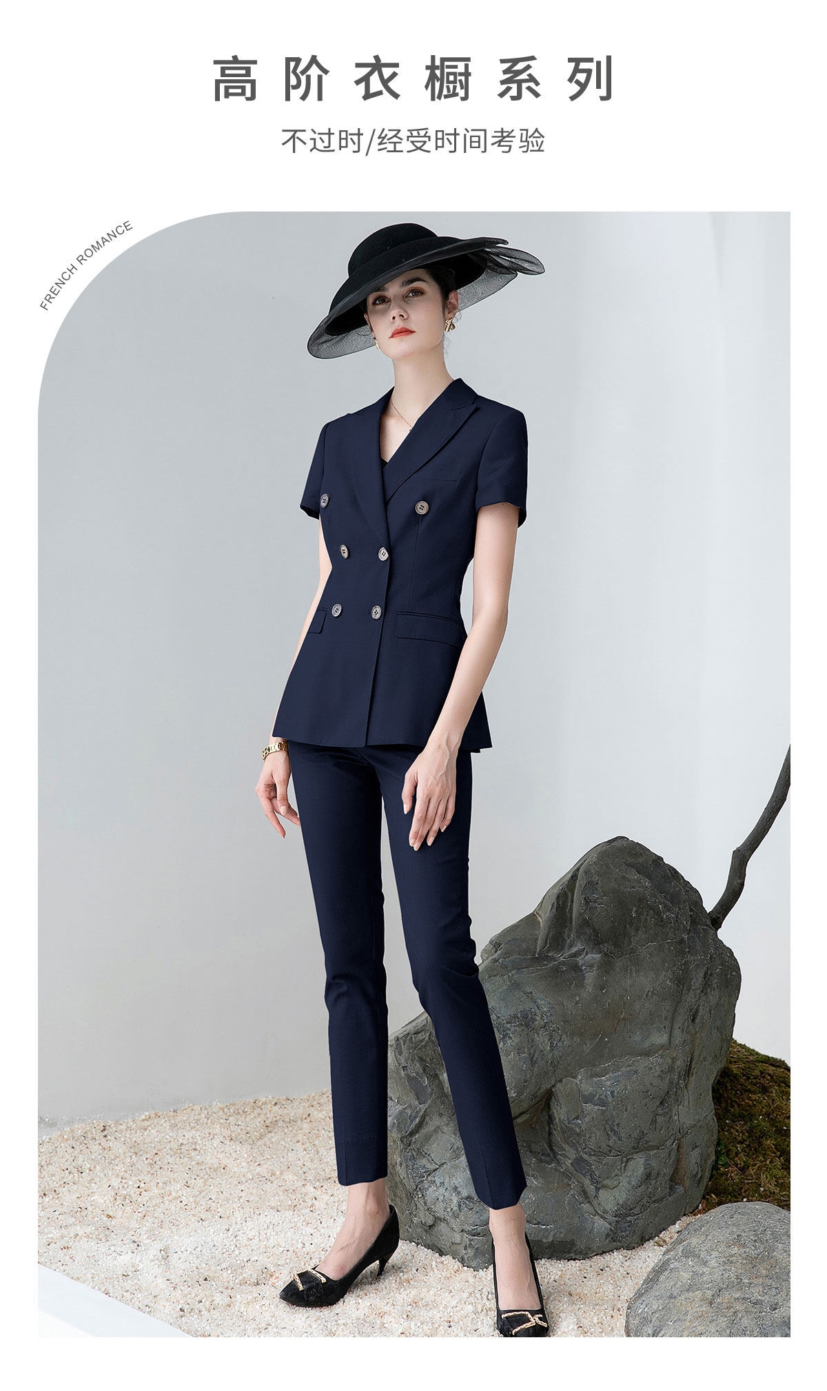 AD高端灰色职业装女西装套装2024夏季短袖双排扣西装公务员工作服