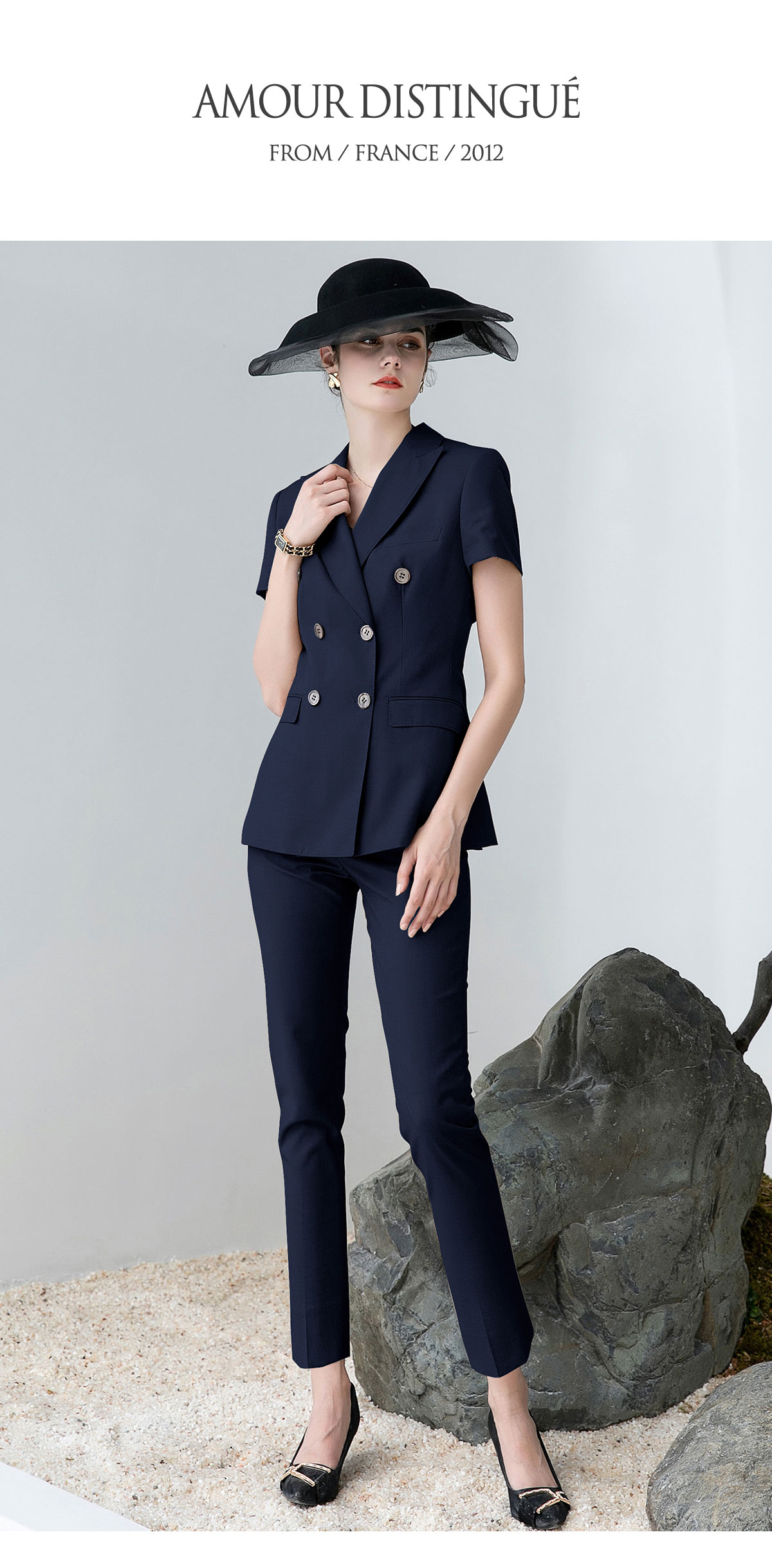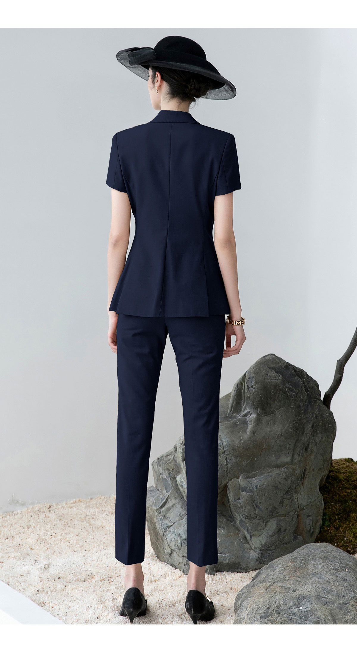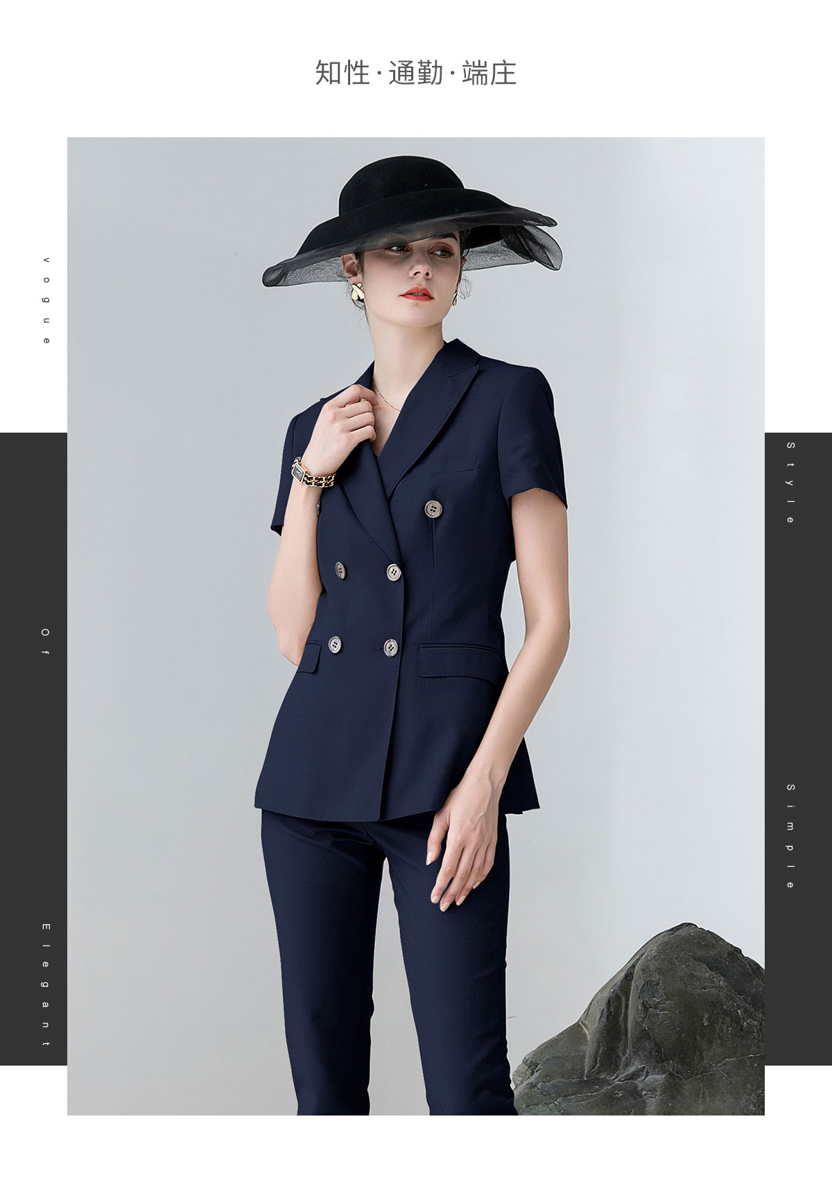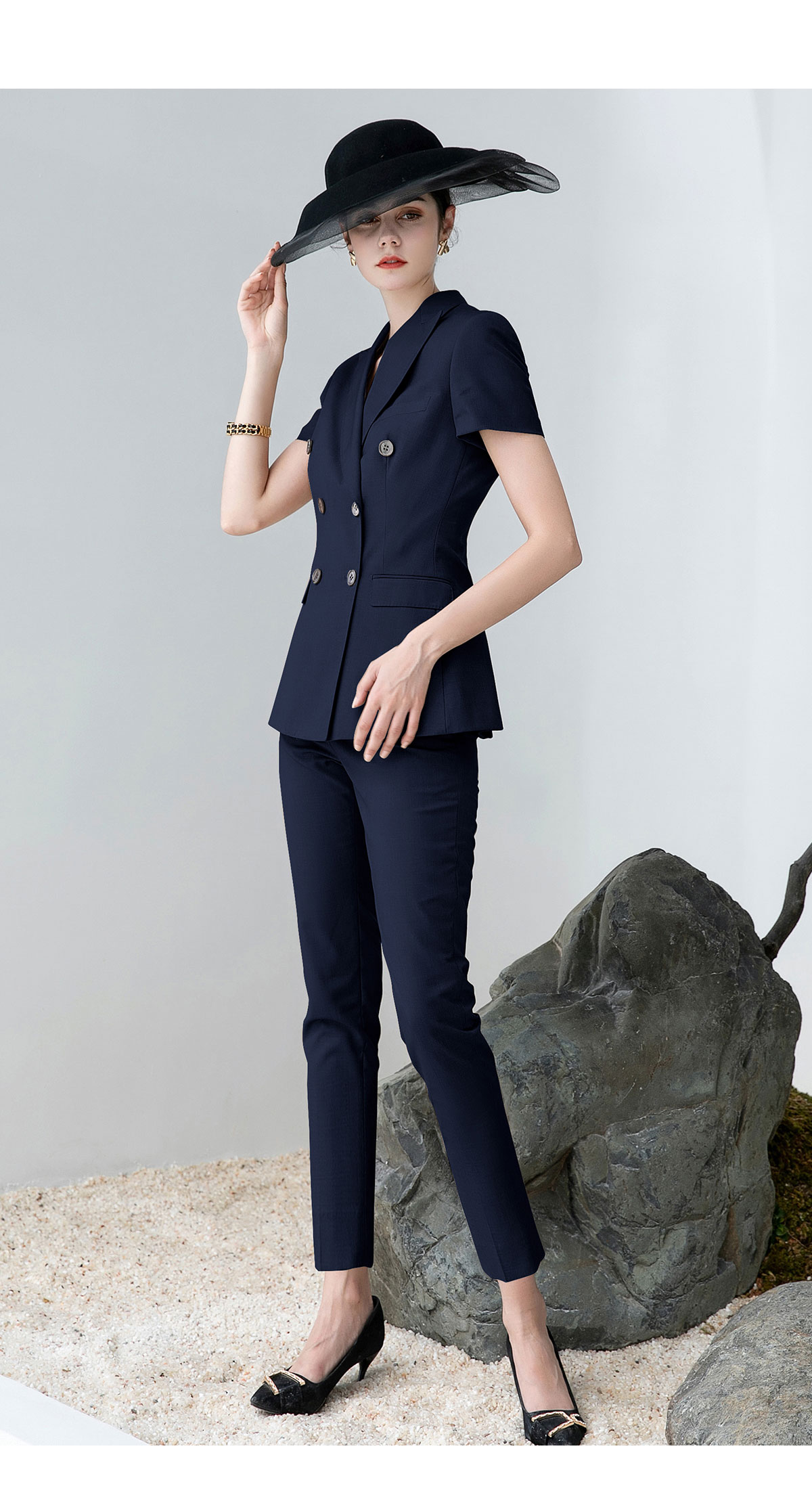 AD高端灰色职业装女西装套装2024夏季短袖双排扣西装公务员工作服