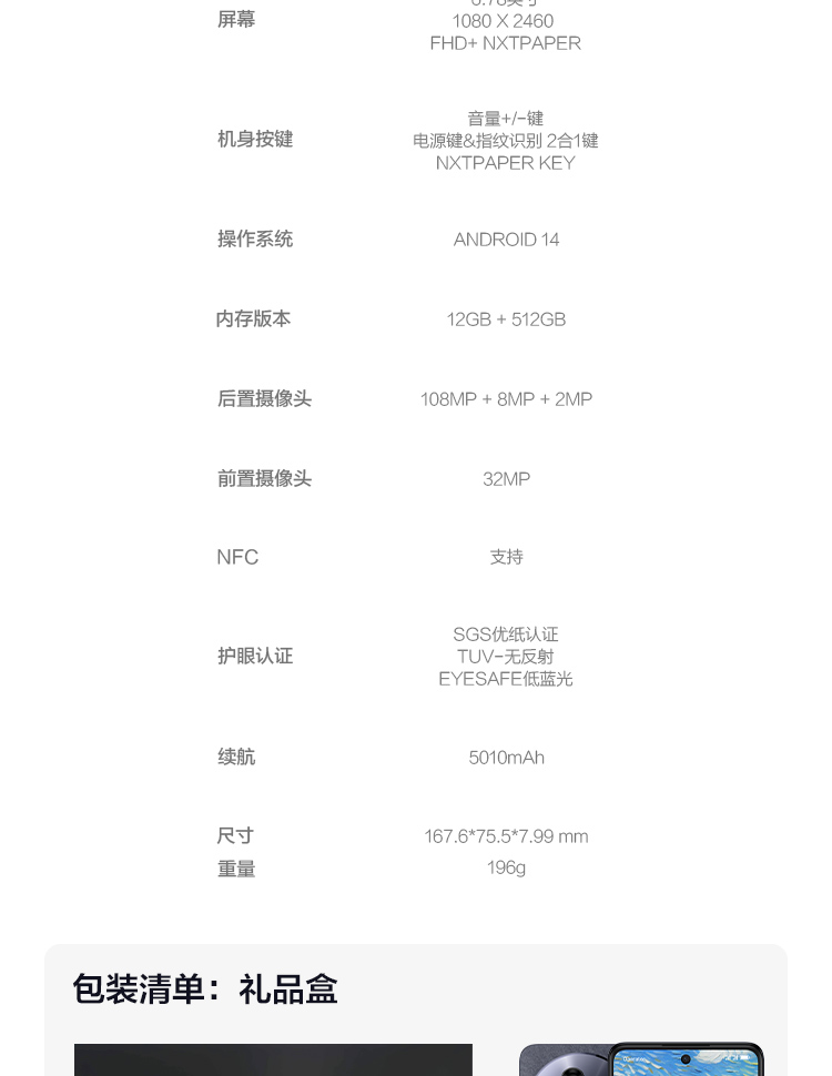 【TCL手机】TCL P10 礼盒版 512GB 彩墨护眼手机