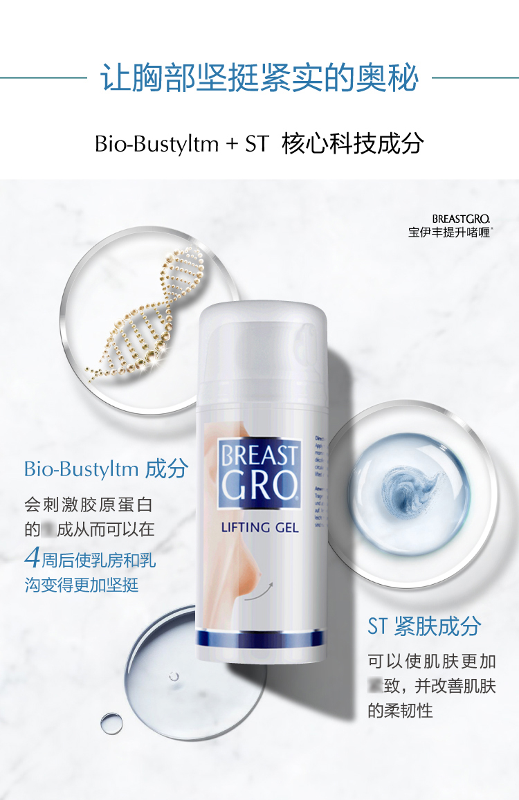产品功效:强化乳房组织,改SHAN下垂,刺激胶原蛋白产生,改SHAN肌肤柔韧性