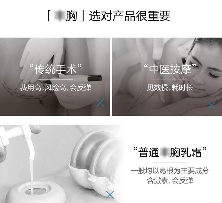 产品功效:增加脂肪组织体积,促进胸部脂肪存储,紧实肌肤,自然饱满