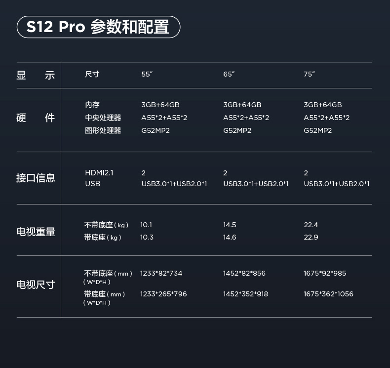 【TCL彩电】TCL 55S12 Pro 55英寸 安桥Hi-Fi音响 双重120Hz电视
