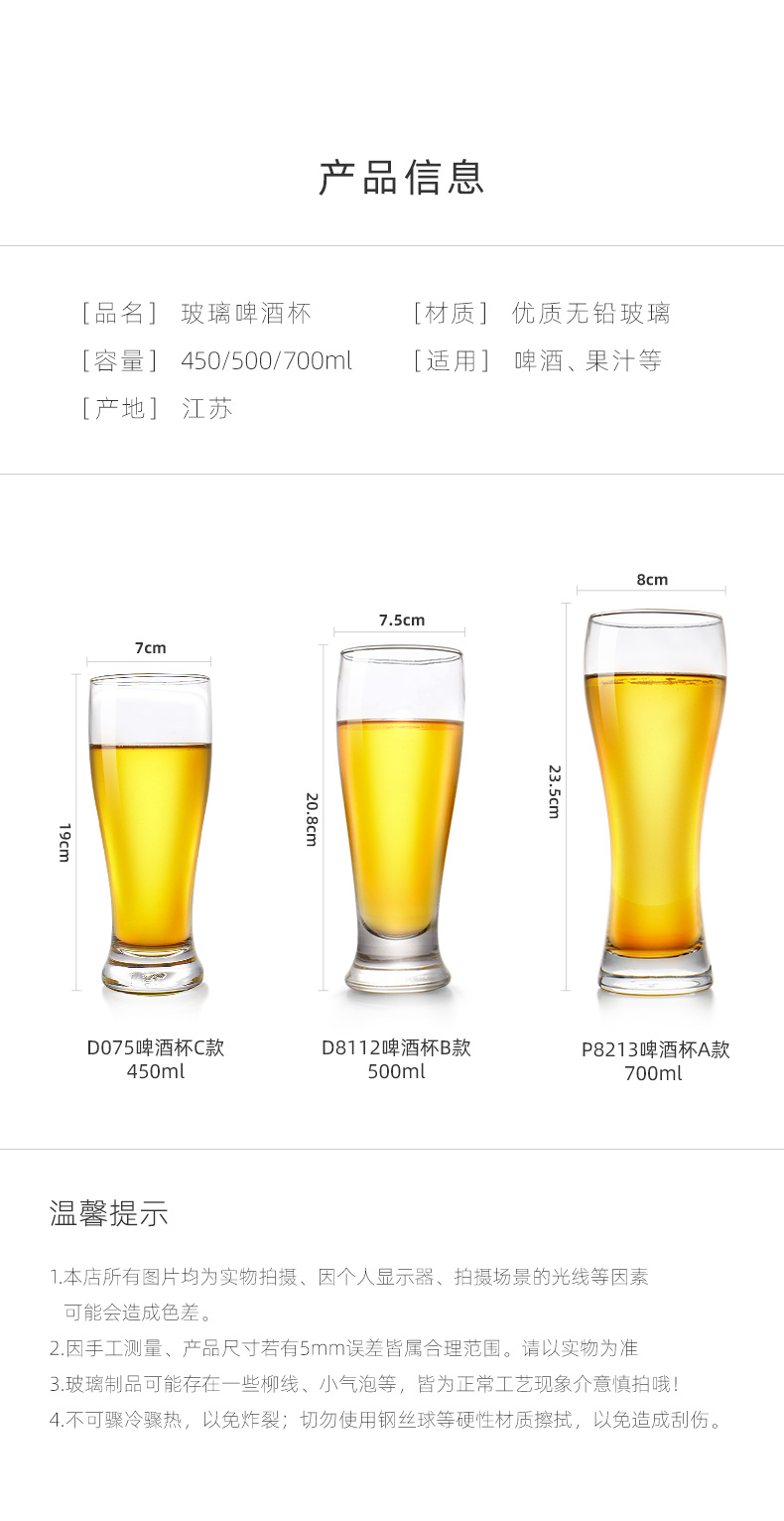 【啤酒杯】欧式大容量玻璃啤酒杯加厚创意个性扎啤杯杯子畅享冰爽