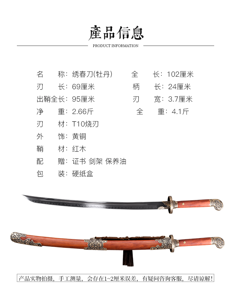 牡丹绣春刀 龙泉沈广隆剑手工一体刀剑 传统收藏剑 未开刃