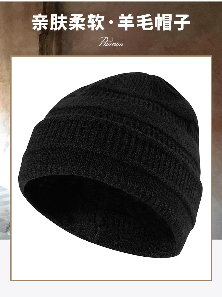 【100羊毛 厚实保暖】罗蒙秋冬季防风保暖针织帽子男休闲百搭线帽