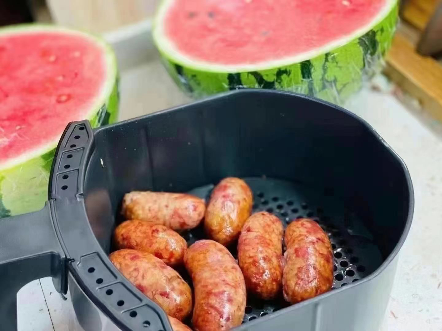新品-{台湾黑猪肉手工香肠}OhMy噶[晕],台湾香肠真的好吃上天 无需解冻,空气炸锅200度15分钟, 外皮脆的!内里还爆汁.....每天我都忍不住要吃一包!这是为肉食爱好者的神药吧![偷笑][偷笑]搭配牛排也很赞哦