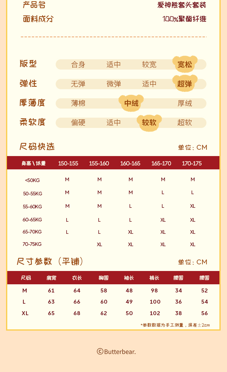 【积分兑换】黄油小熊联名[爱神熊套头款]女保暖加绒秋冬可外穿家居服