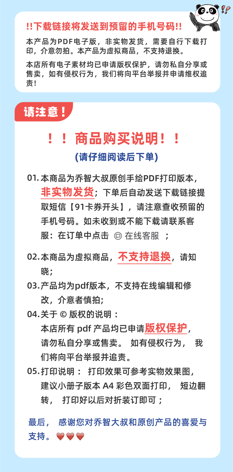 乔智大叔原创手绘——大自然寻宝任务卡pdf文件(6张)