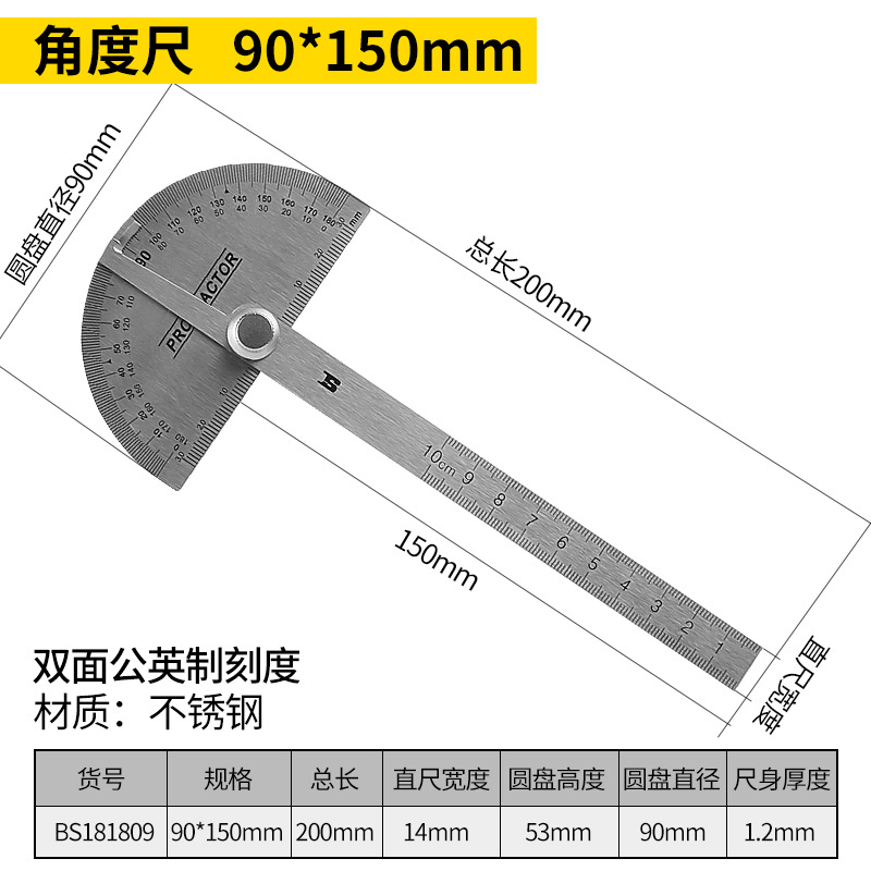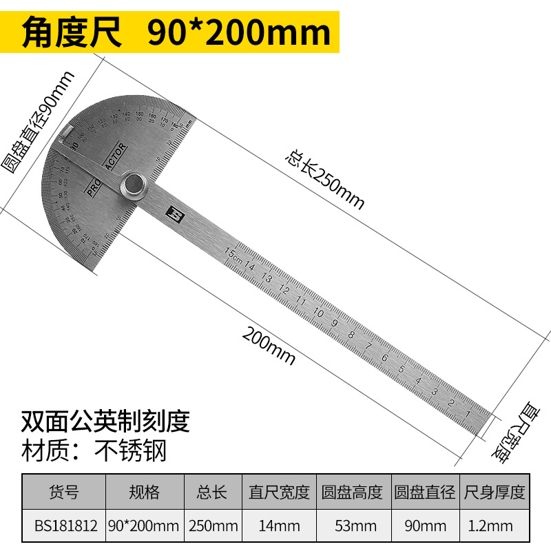 波斯角度尺BS-A318 6"(90x150mm) 8"(90x200mm) BS181809/BS181812