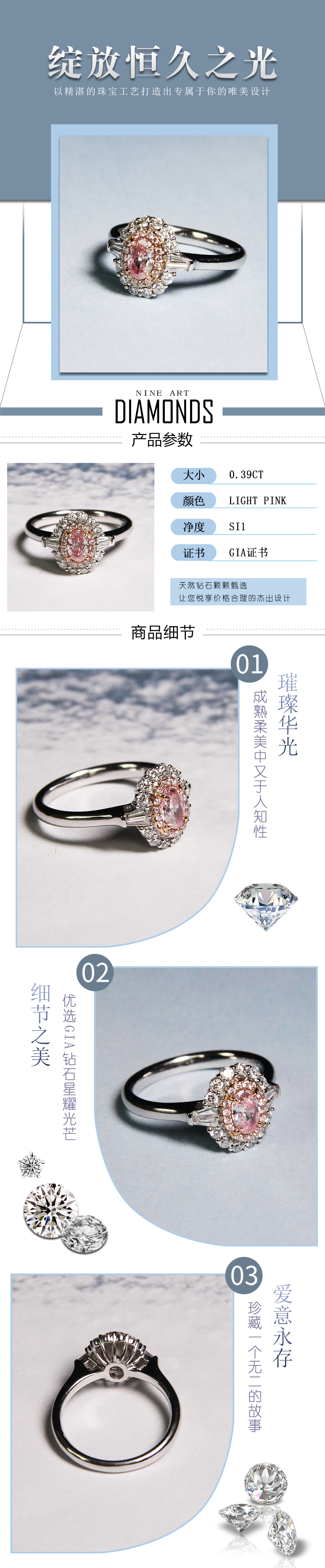 天然粉钻戒指0.39克拉