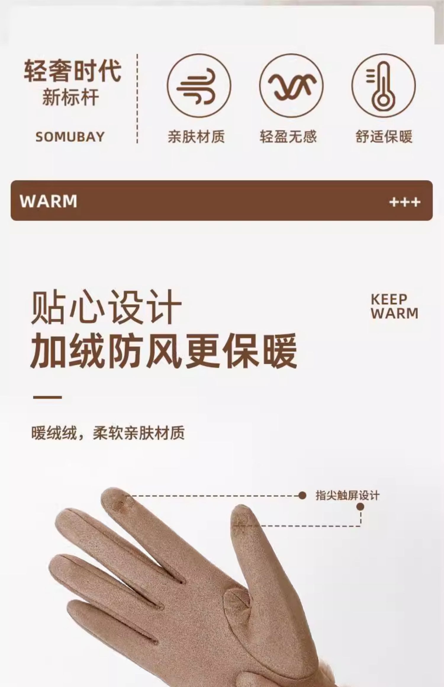 【甄选】买一送一!!【特妮娜 男女款保暖手套】手感软糯 密度紧实 寒风进不来 表层微绒 空气锁温 修饰手型 保暖舒适不臃肿 自然亲肤 指尖触屏设计