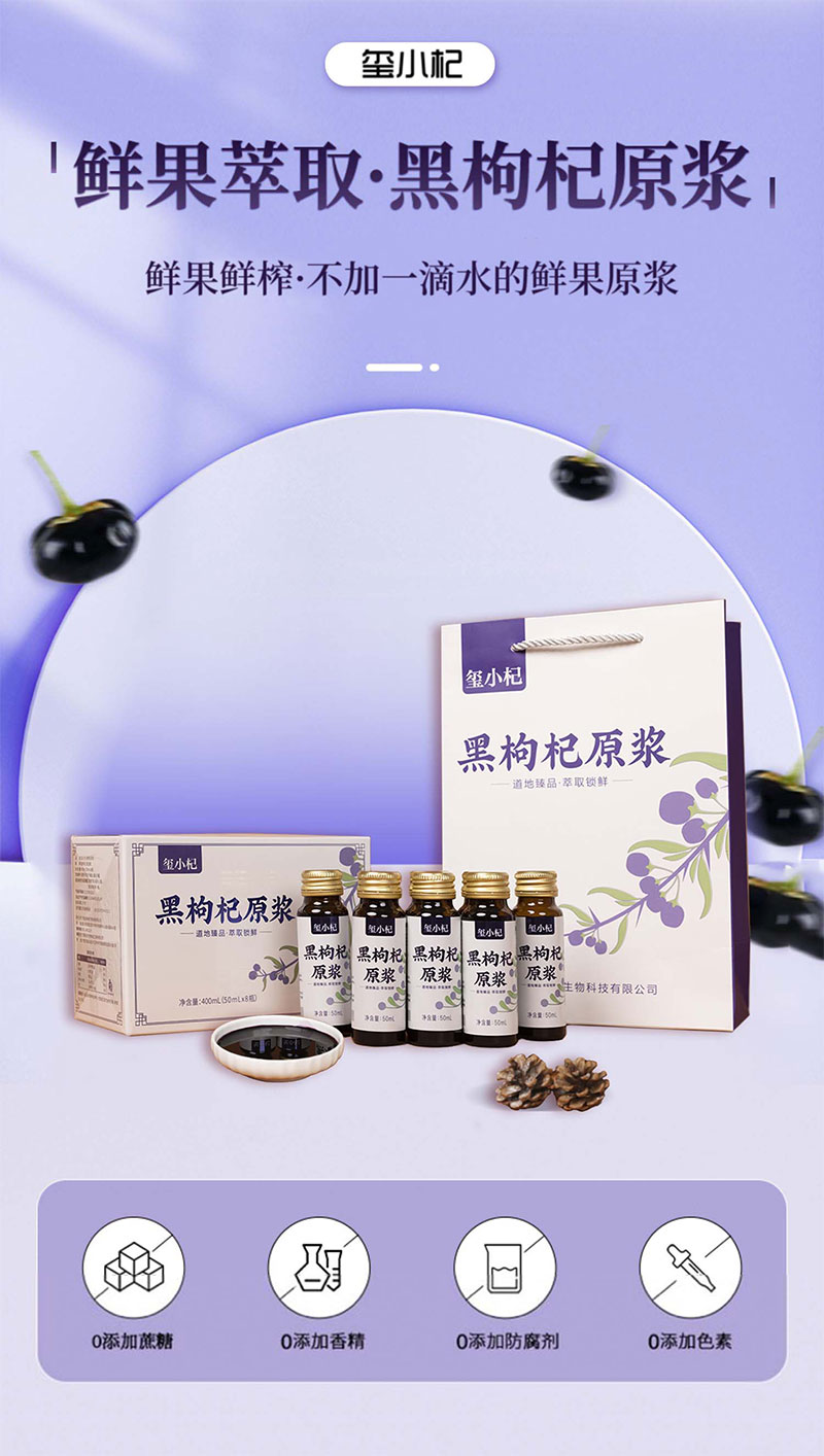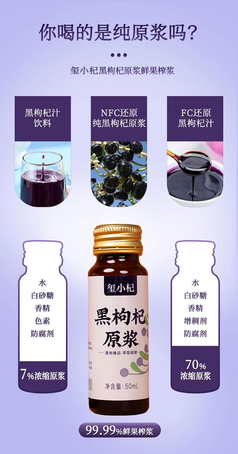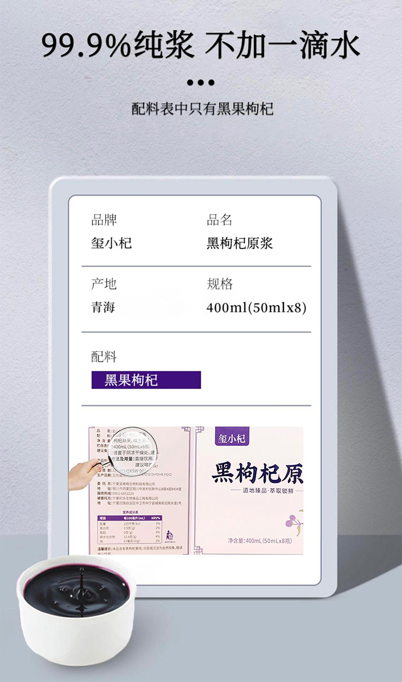 宁夏中宁红枸杞原浆 青海黑枸杞原浆 鲜枸杞原液50ml*8瓶/盒