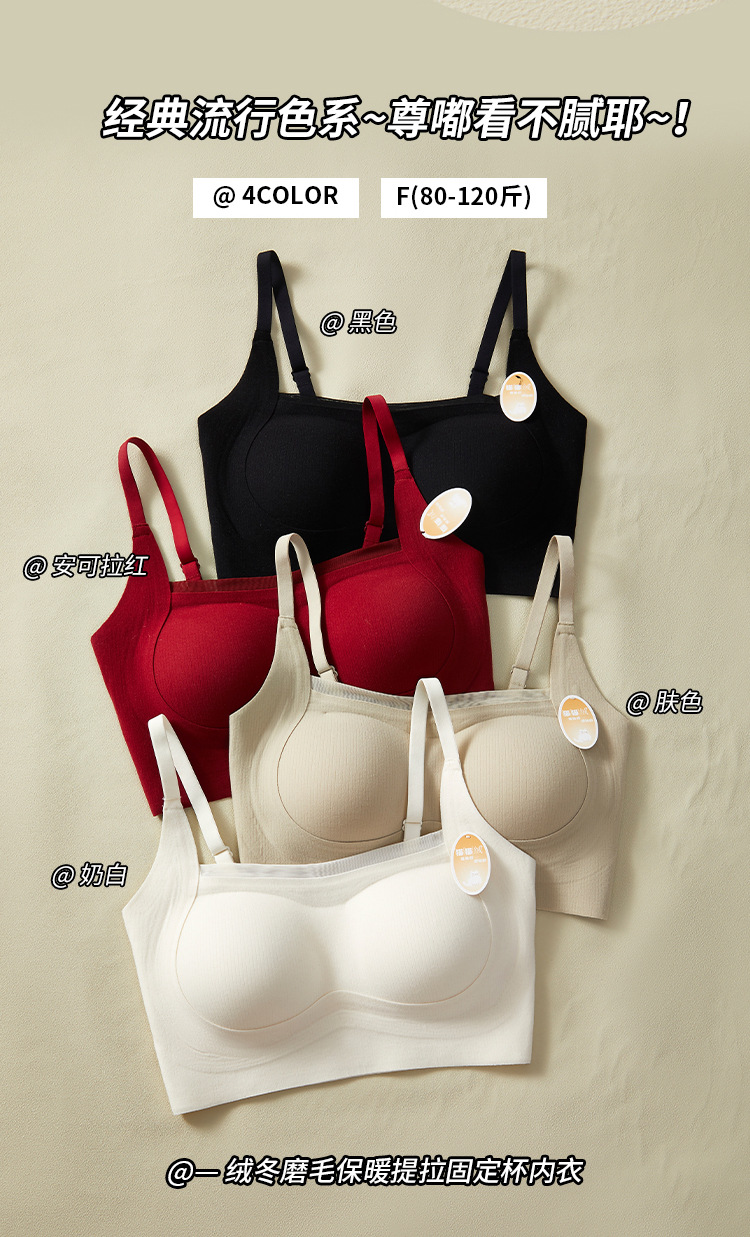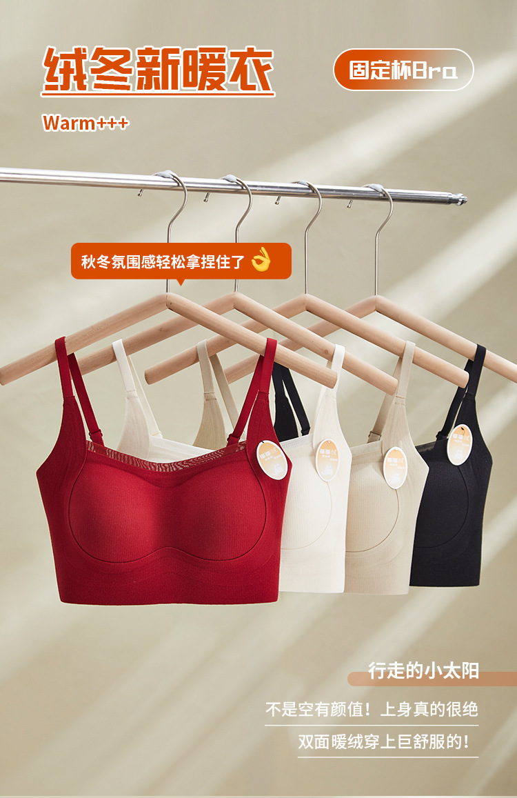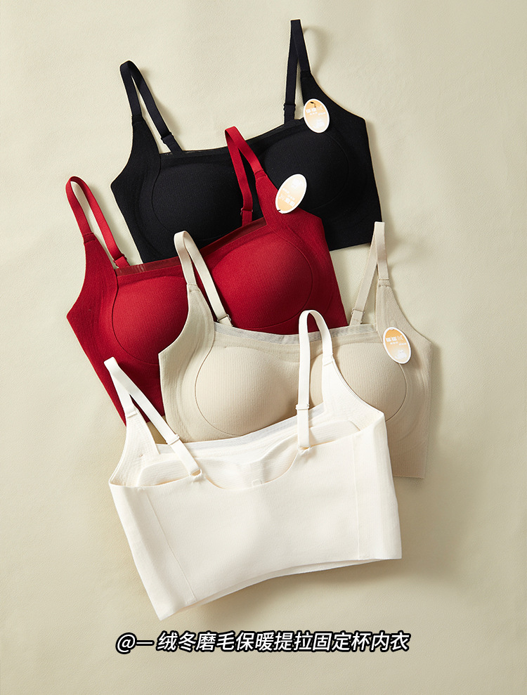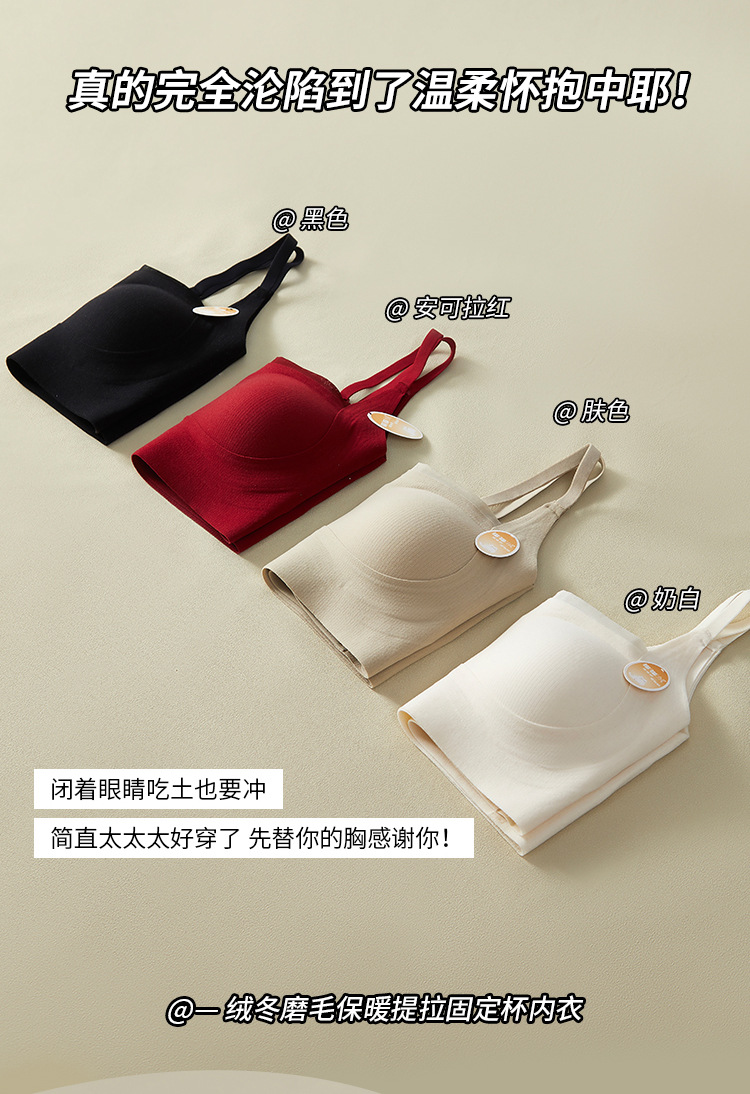 绒冬磨毛保暖提拉内衣固定杯Bra纯色百搭无痕抹胸内搭上衣HLY