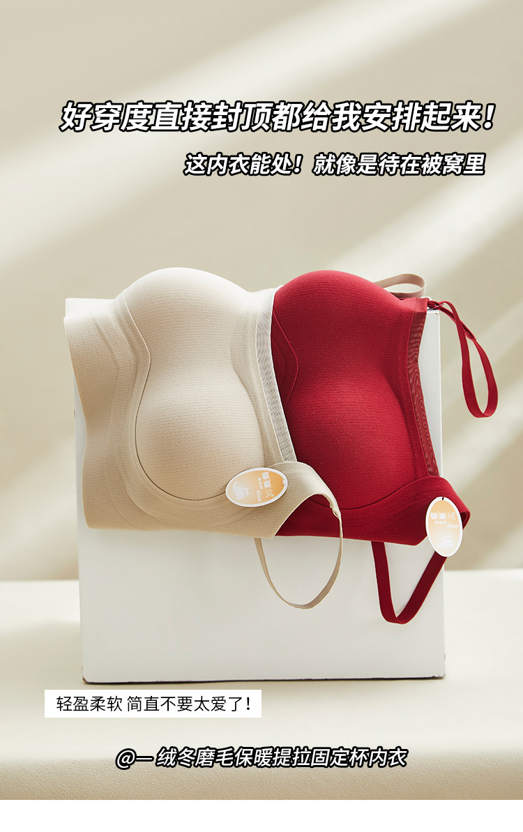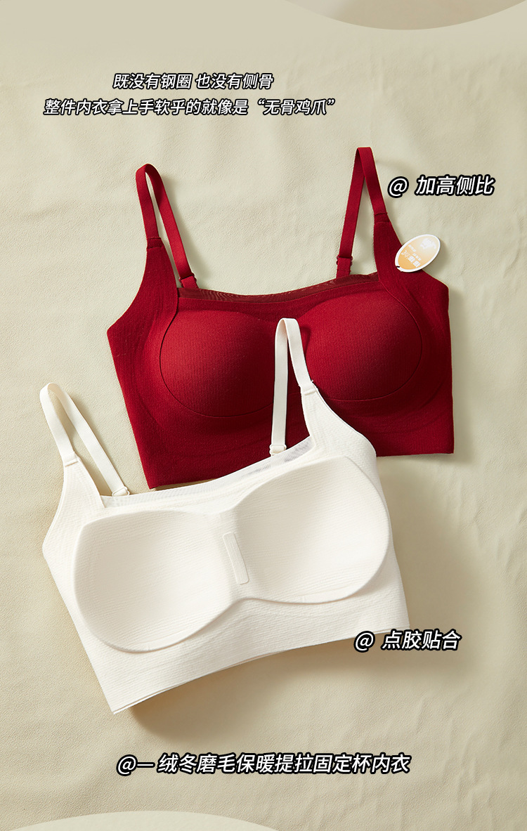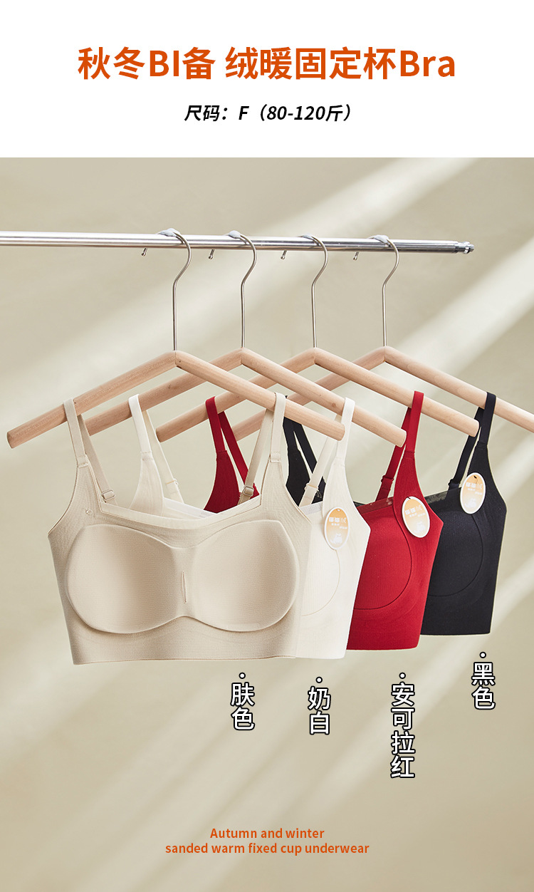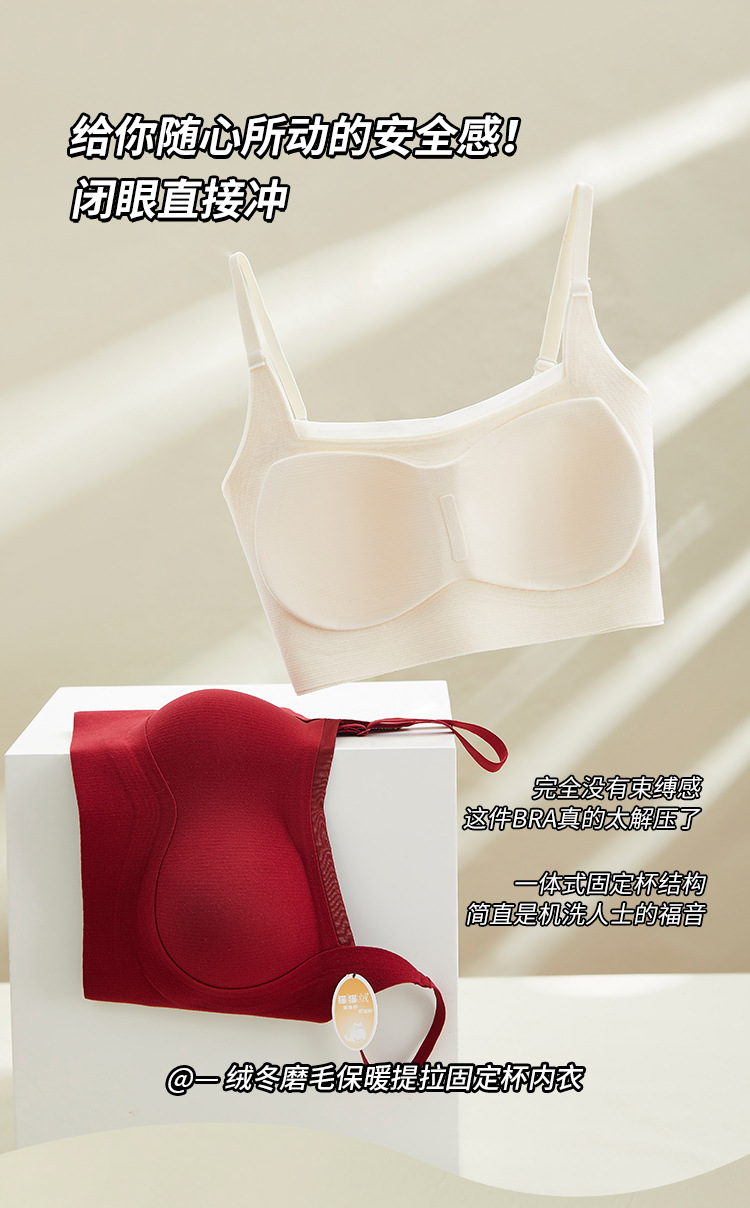 绒冬磨毛保暖提拉内衣固定杯Bra纯色百搭无痕抹胸内搭上衣HLY