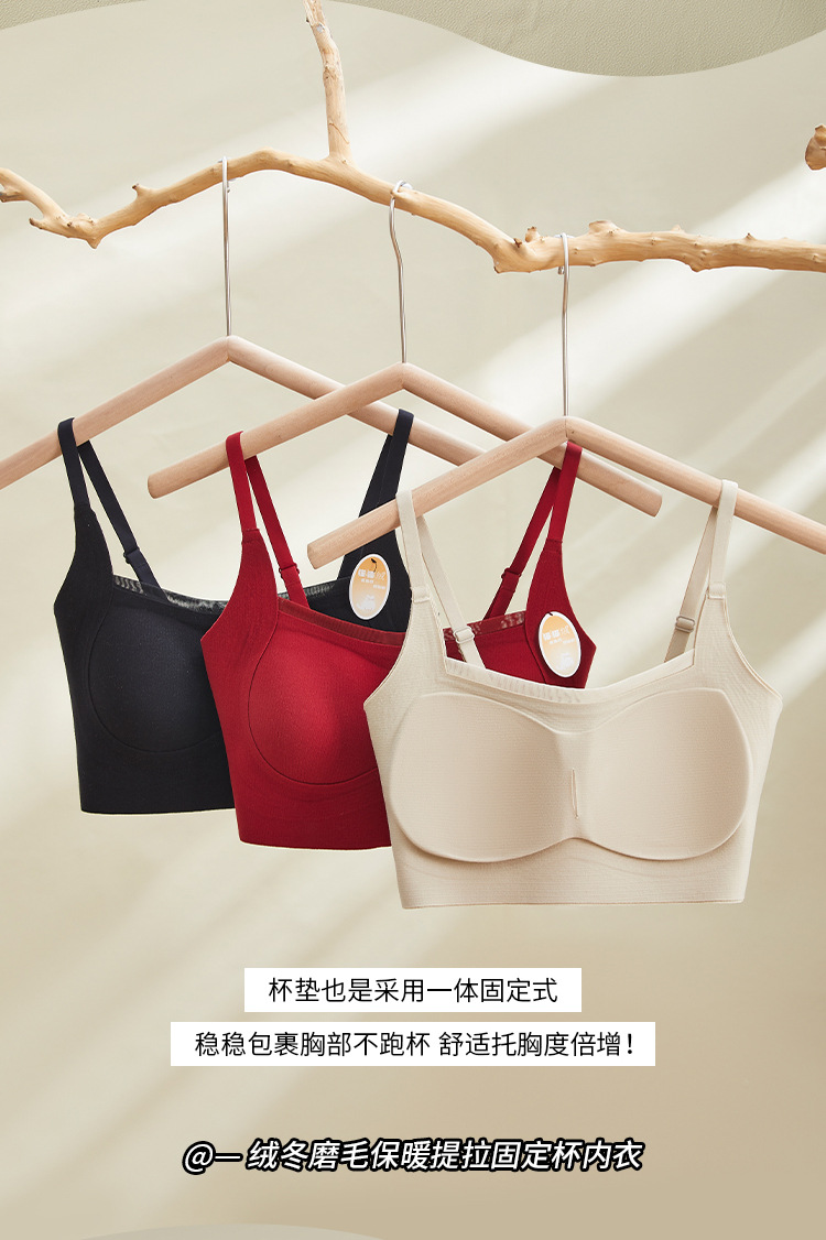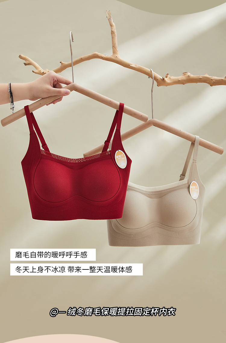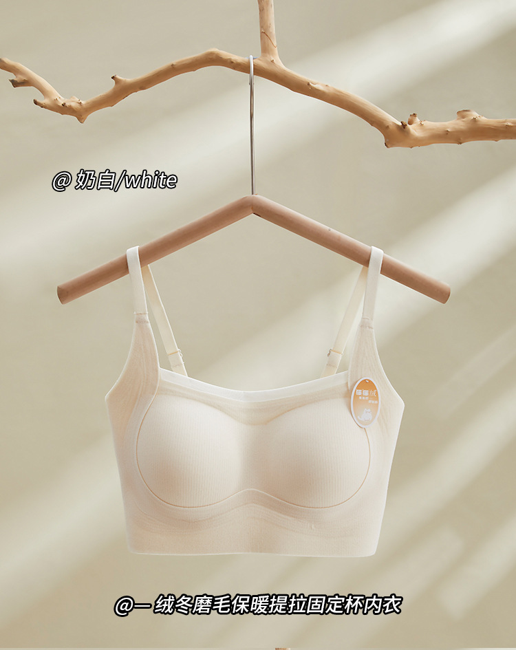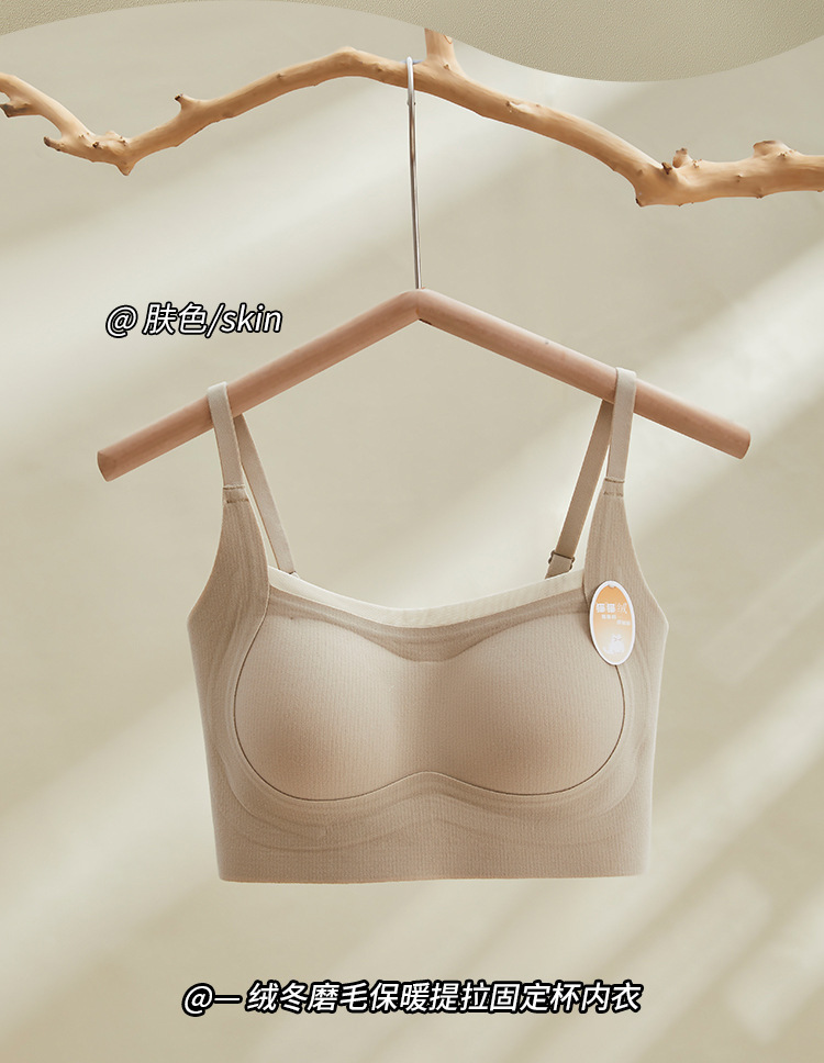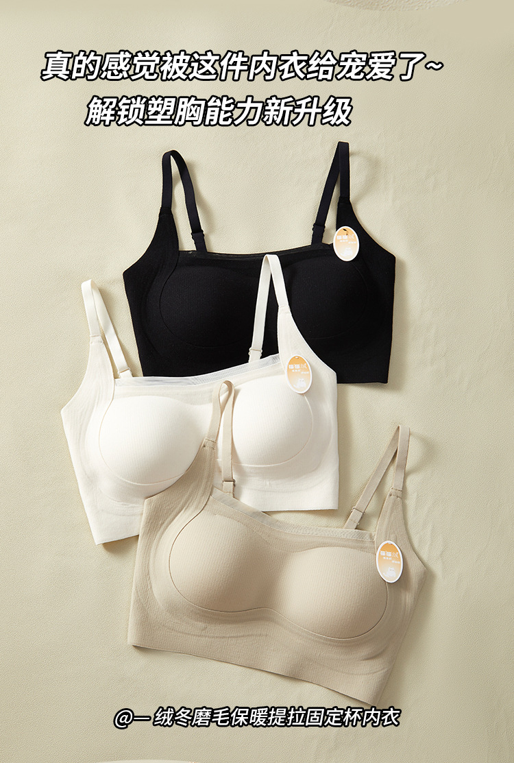 绒冬磨毛保暖提拉内衣固定杯Bra纯色百搭无痕抹胸内搭上衣HLY 商品图7