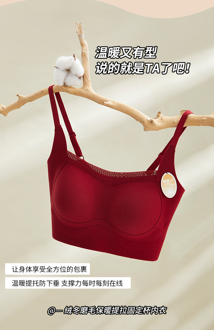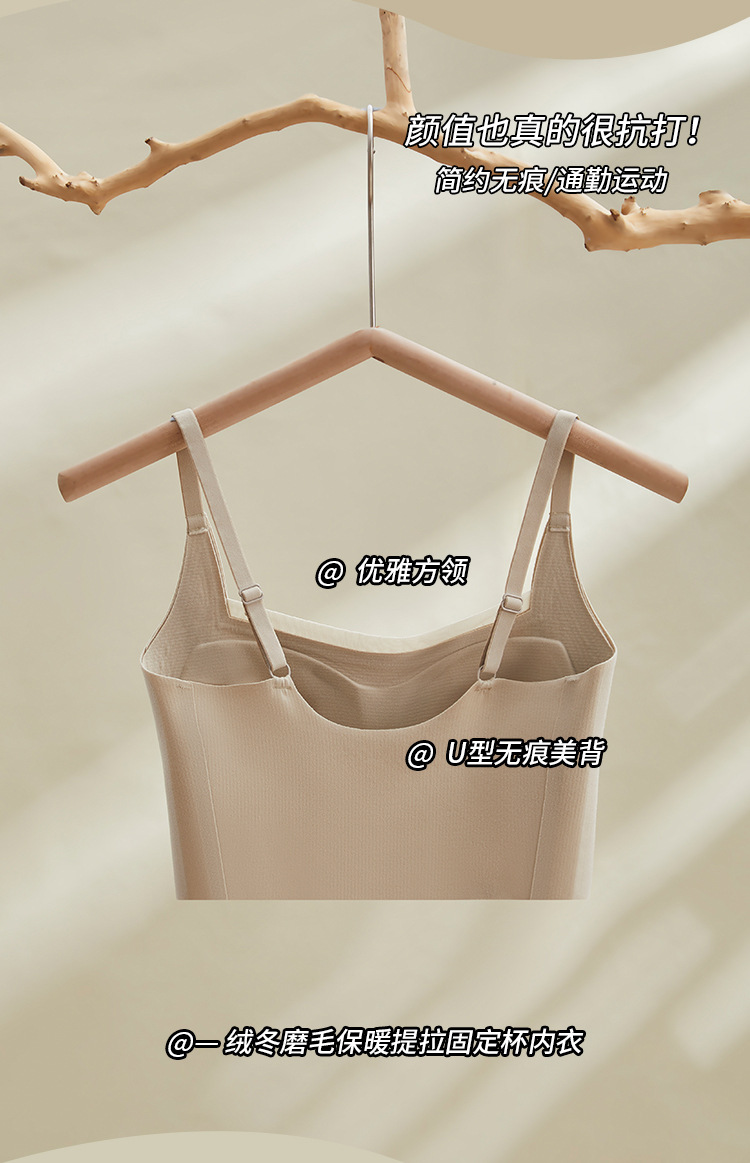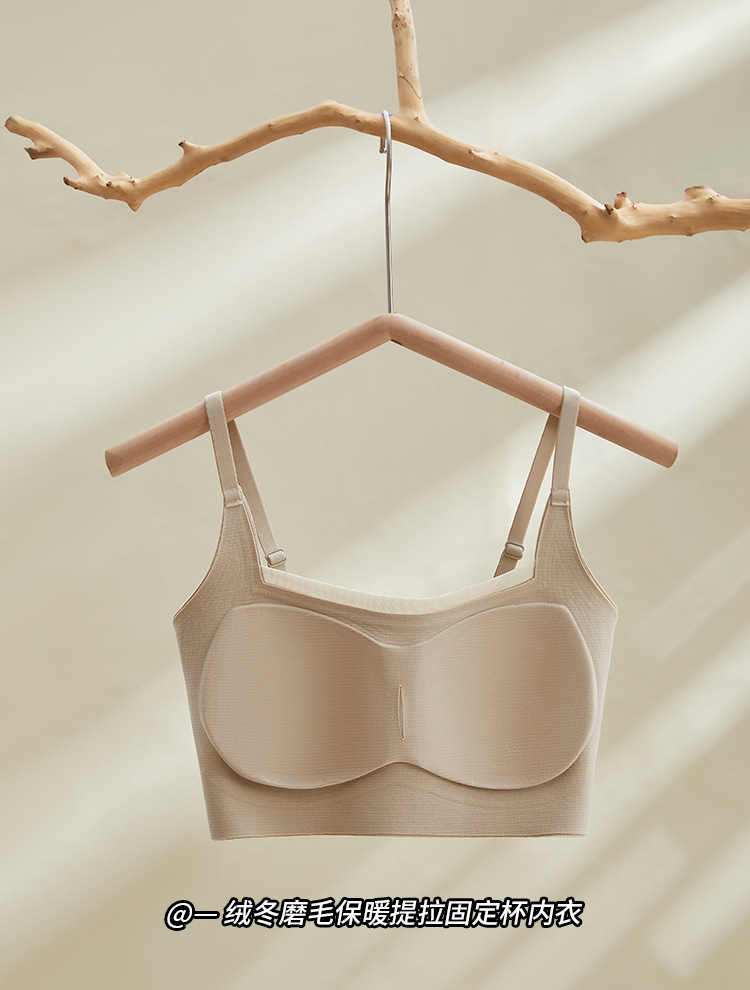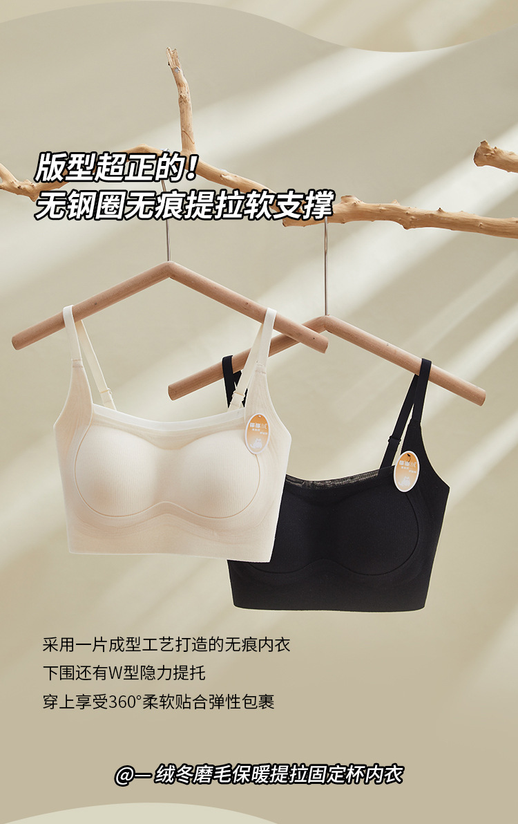 绒冬磨毛保暖提拉内衣固定杯Bra纯色百搭无痕抹胸内搭上衣HLY 商品图7