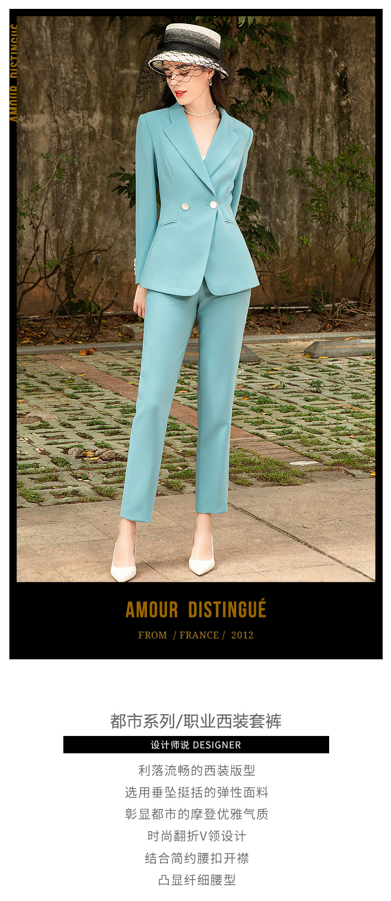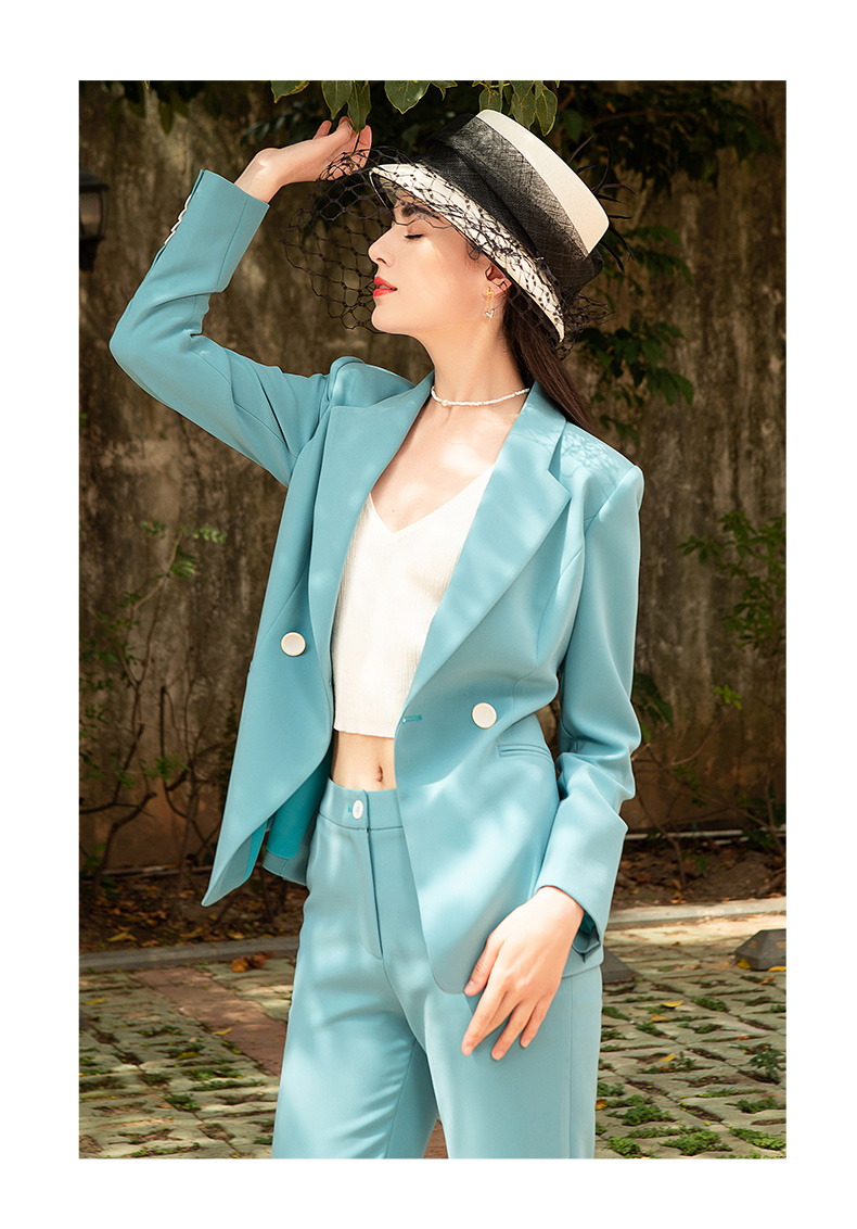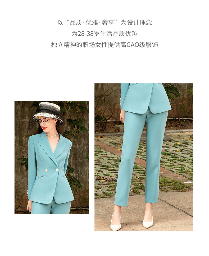 AD高级感蓝绿色职业西服套装女士秋冬西装播音艺考主持人面试正装