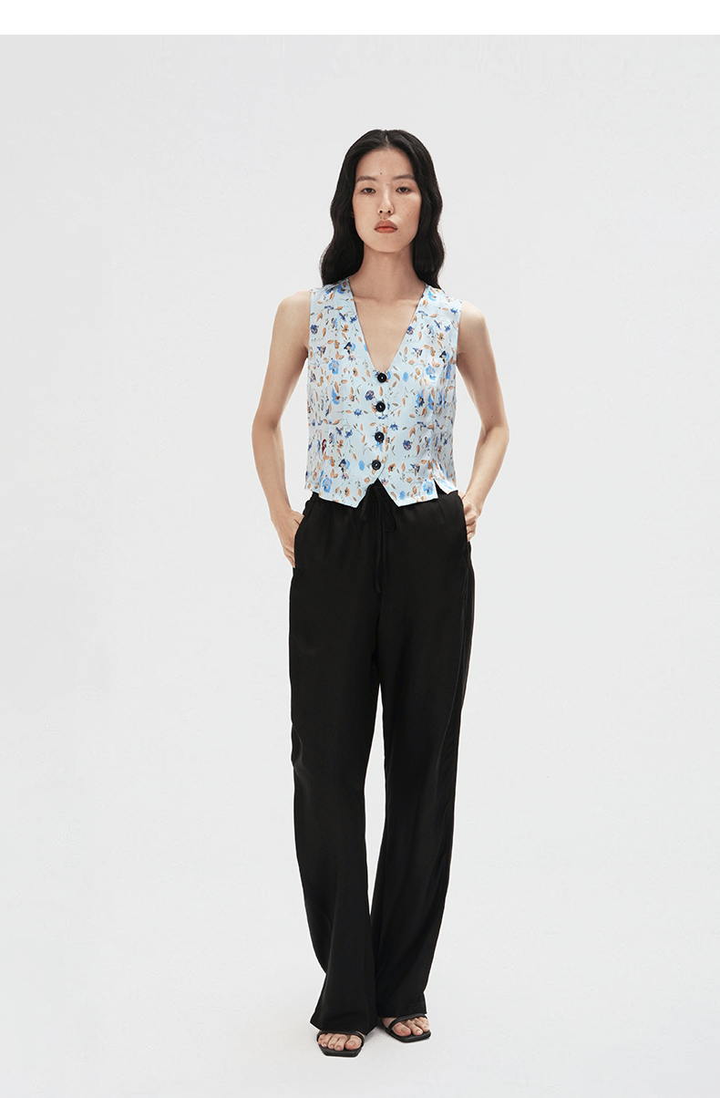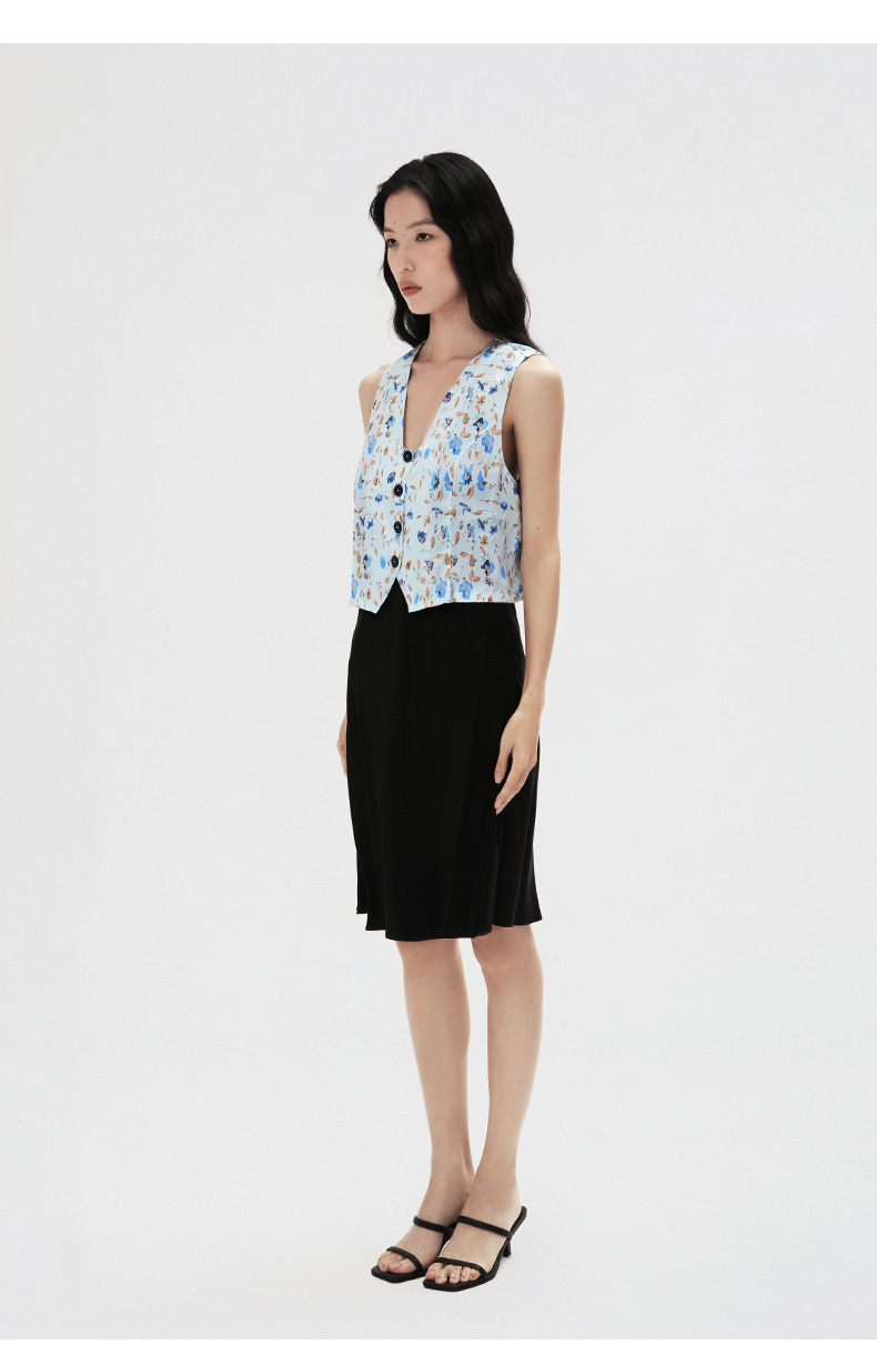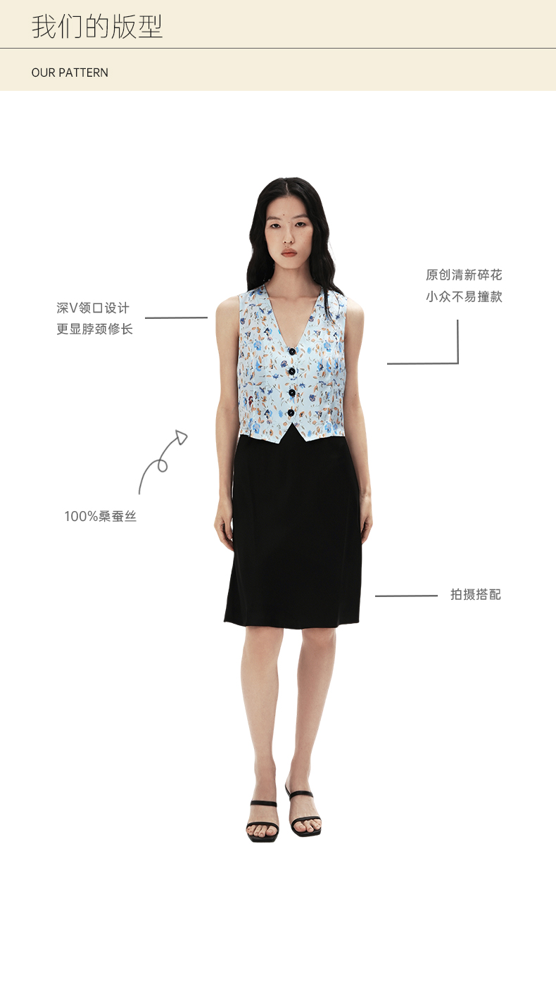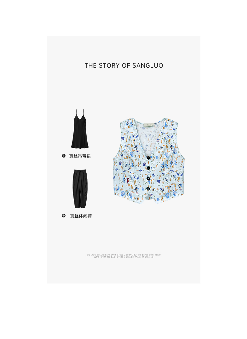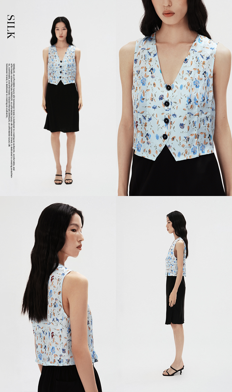 烂漫田园』桑罗清新碎花V领马甲桑蚕丝女款百搭叠穿背心