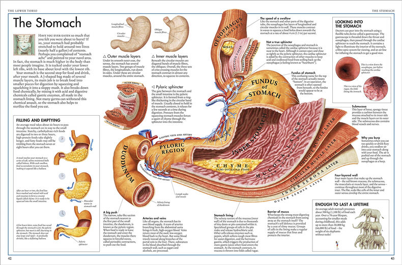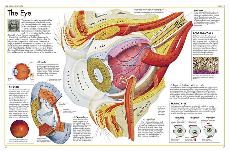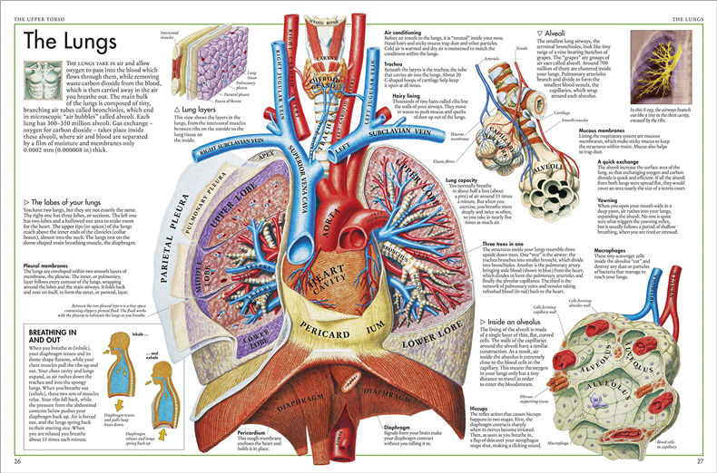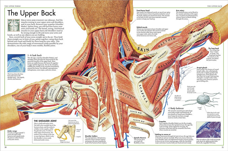 The detailed illustrations carefully pull back the layers of the body so you can see inside the hidden interior. All bones, muscles, and organs are clearly labelled with scientific and common names; and there are photos of parts you wouldn't normally be able to see, such as your vocal cords.