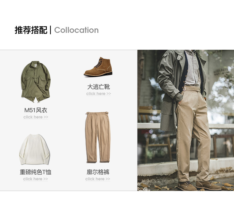 工装优选 美式复古高腰廓尔格军裤库尔喀直筒那不勒斯休闲西裤男墩