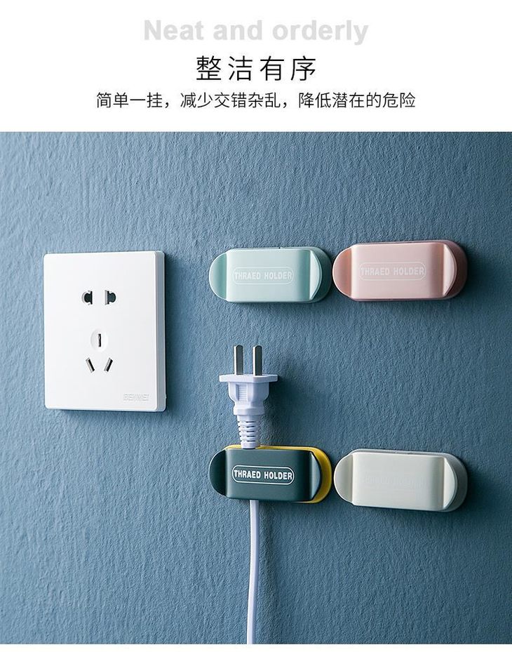 【4个装】创意撞色简约插头挂钩收纳固定器 | 免打胶粘孔电源线防拔收纳,