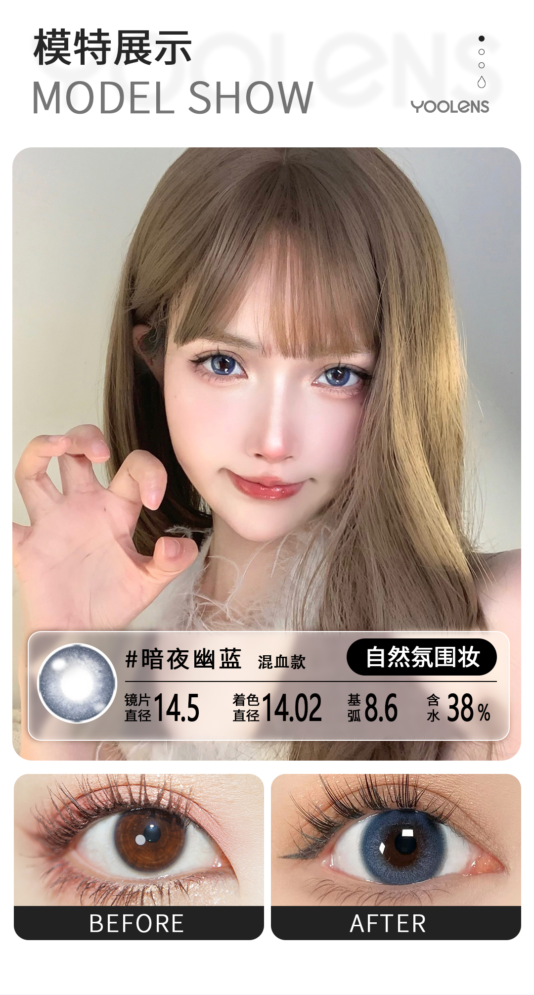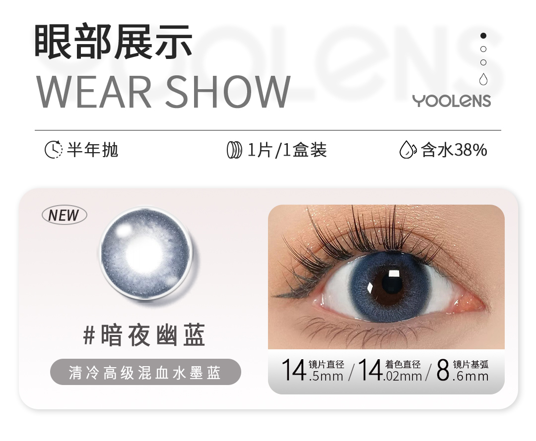 冷艳女王14.5大直径蓝色半年抛美瞳一片装(1副拍2,YB07)