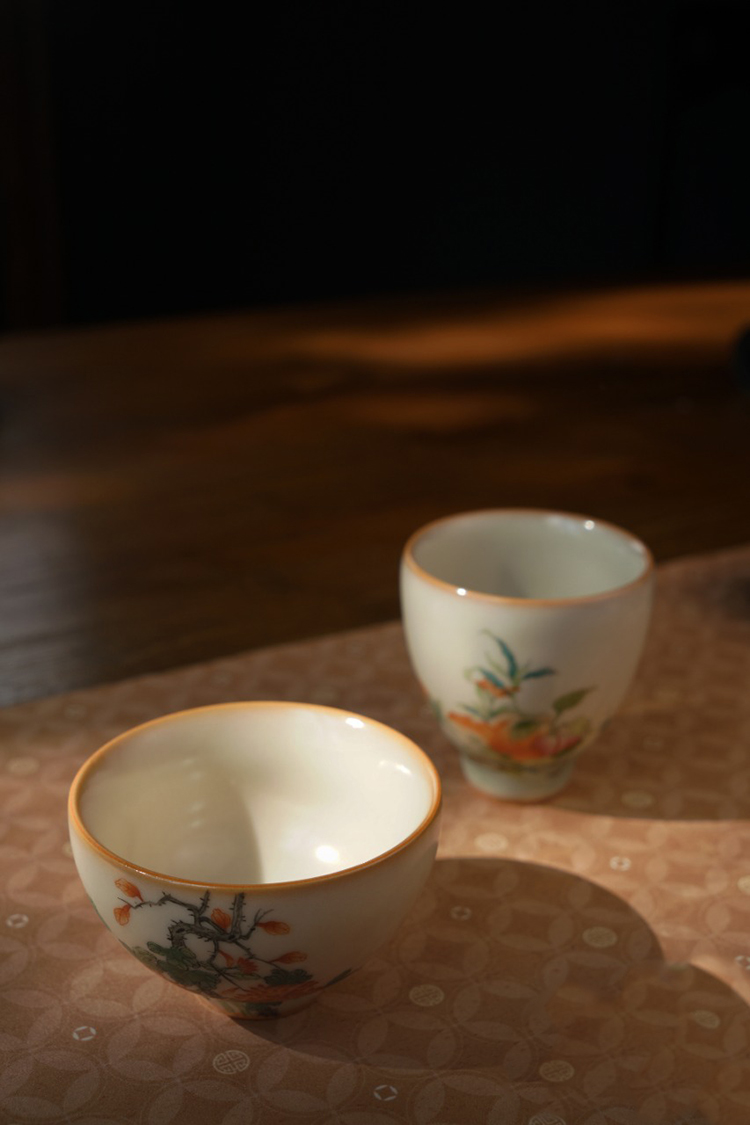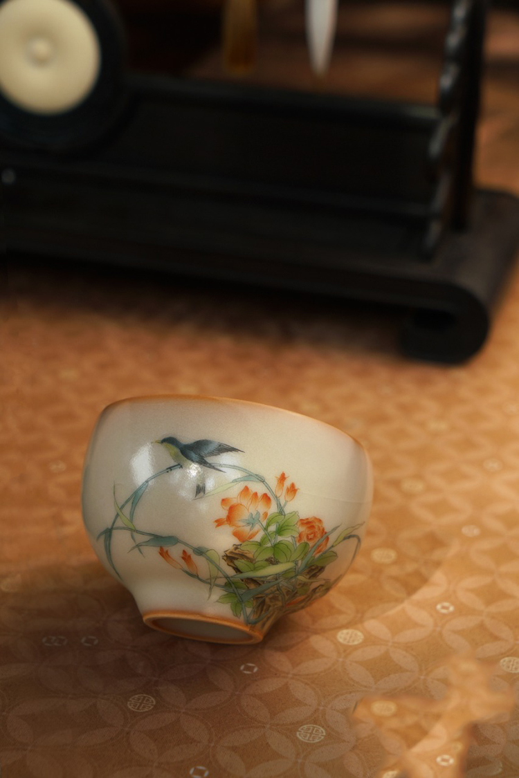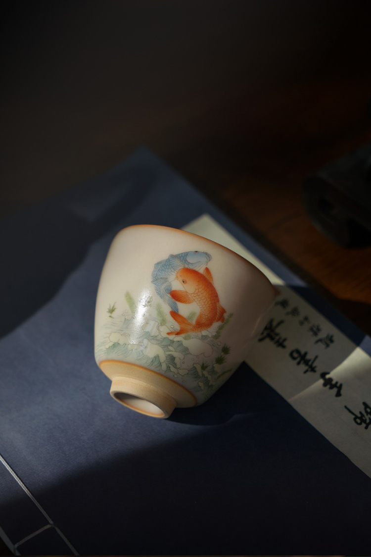问鼎松涛彩绘哥窑浮白杯(芦苇鸟)雪羽杯(年年有鱼)寒云杯(瓜熟蒂落)梅竞杯(龙鱼沧海)(缺货)