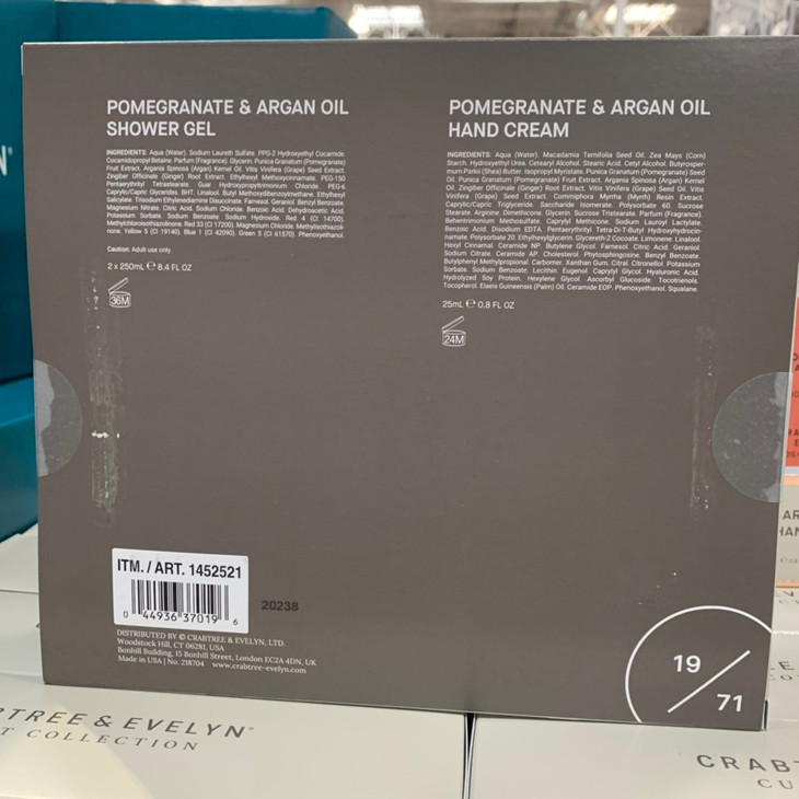 迎元旦特价,美国🇺🇸直邮特价180元🉐🉐包税包邮到手了🔥crabtree&evelyn沐浴礼盒,250ml*2瓶石榴摩洛哥坚果油沐浴露两瓶,赠送一支25g石榴🌹护手霜!送礼超有面子,甜美而浓郁的香气在石榴和摩洛哥坚果油中脱颖而出,可保护和滋润肌肤,摩洛哥坚果油和石榴提取物以丰富的泡沫配方混合在一起,可以清洁和净化皮肤,摩洛哥坚果油温暖干净而柔软,可使皮肤柔软,有香气跟随你每一天。