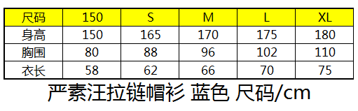 尺码建议:帽衫为纯棉材质,请参照本产品的尺码表选购。