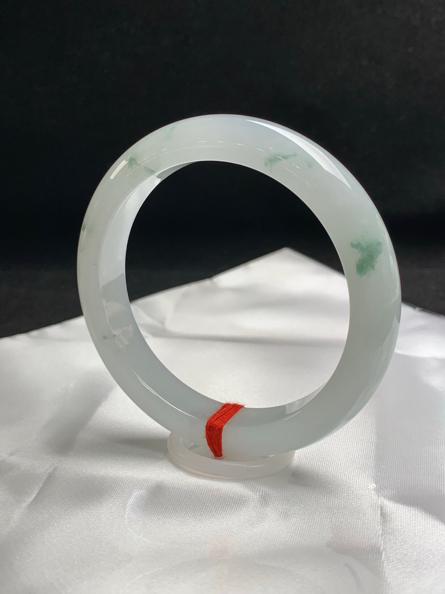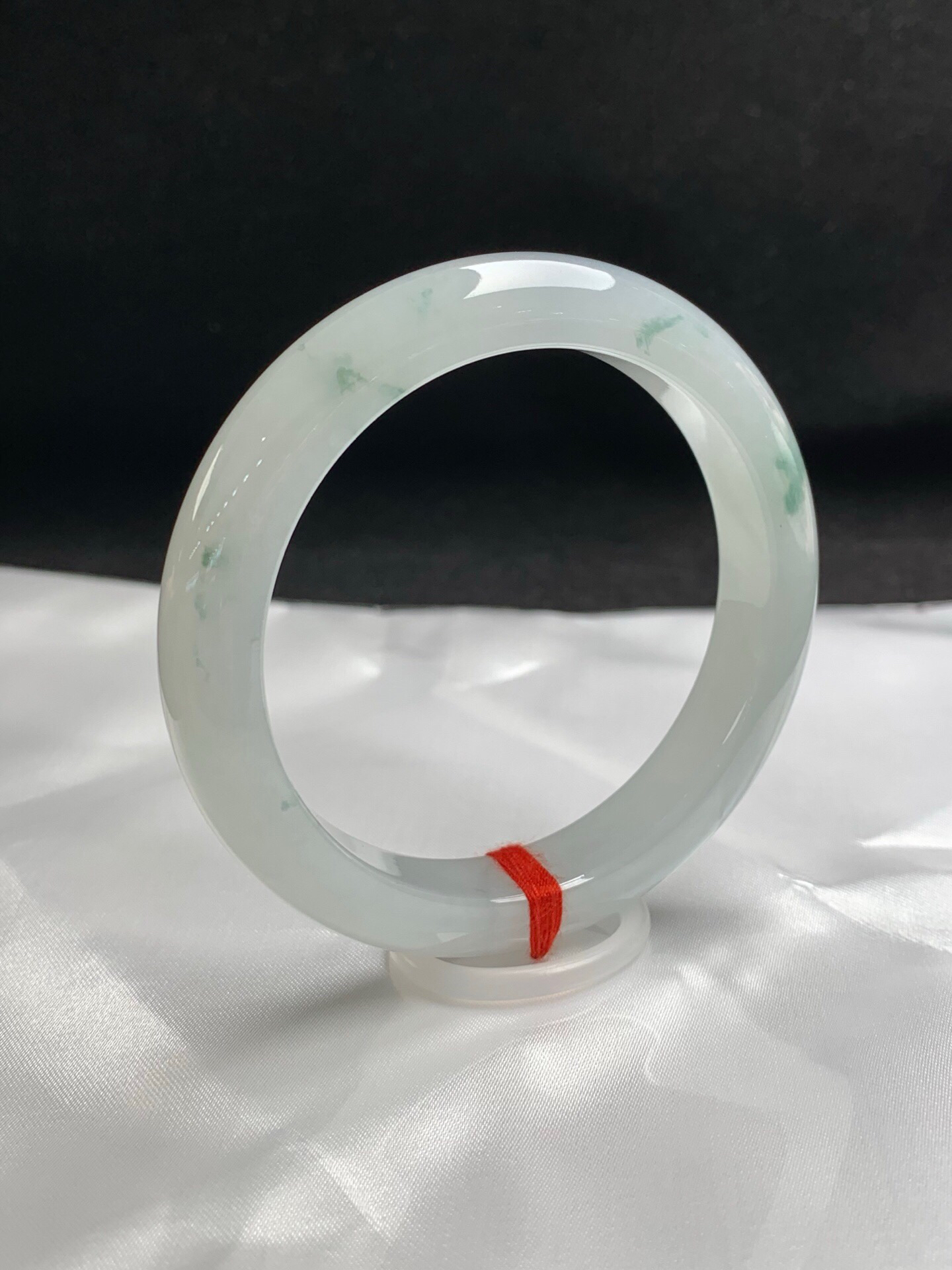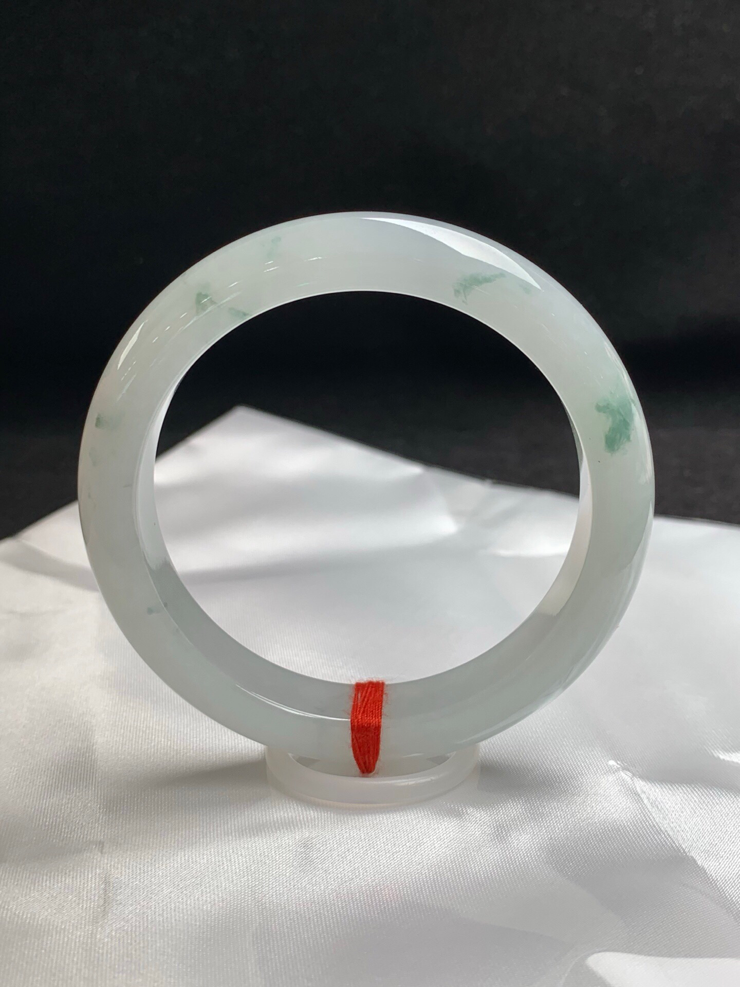 620213,58.8圈口,糯冰飘花正圈平安镯,白底飘蓝花,冰润细腻,干净清爽,完美,尺寸:58.8-12-9,超值价💰26300 #优石客珠宝#香玉荟萃