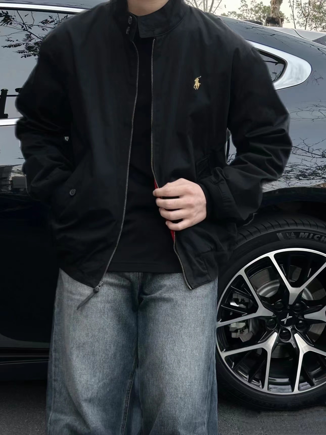 F0304113纯色刺绣Logo拉链哈林顿夹克男款黑色老钱风老干部外套