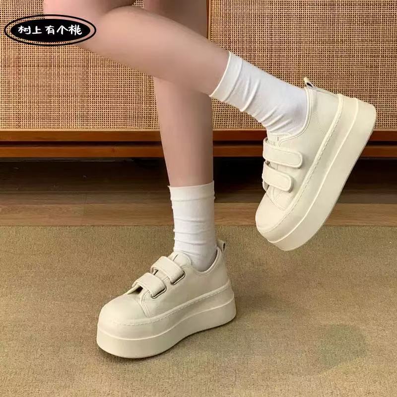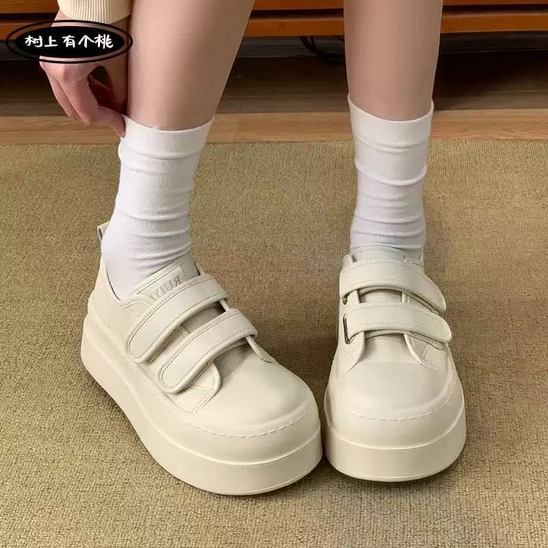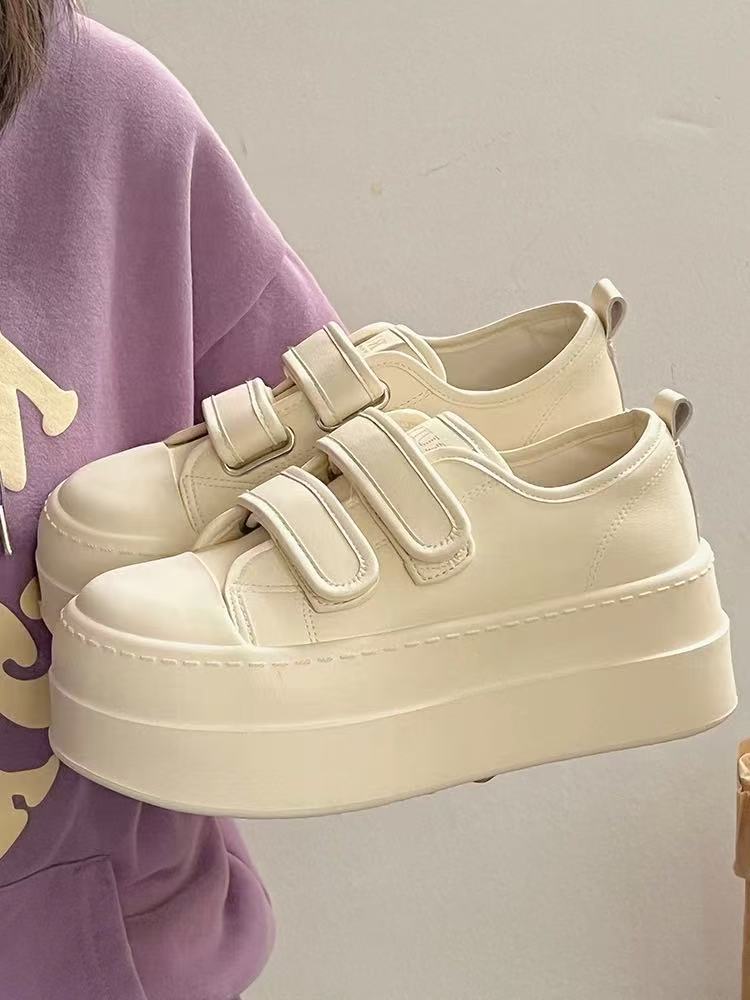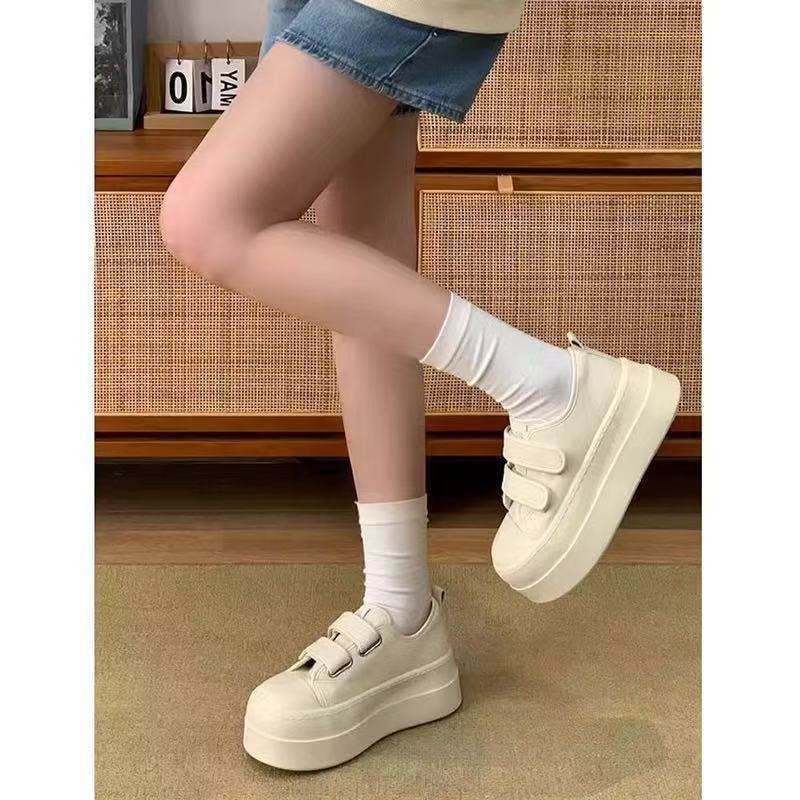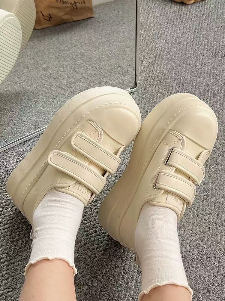 【秒变大长腿❗️厚底增高魔术贴板鞋】出街久穿不累脚,透气不闷脚!休闲板鞋港风平底运动鞋增高女鞋子L