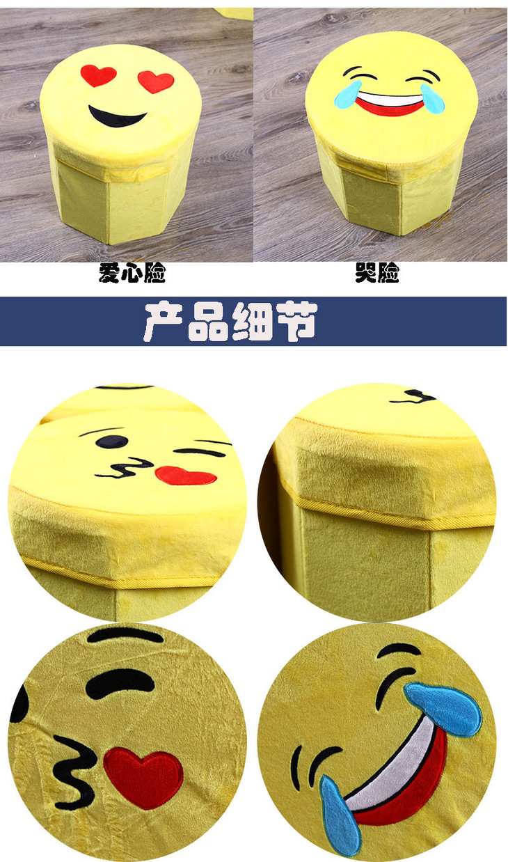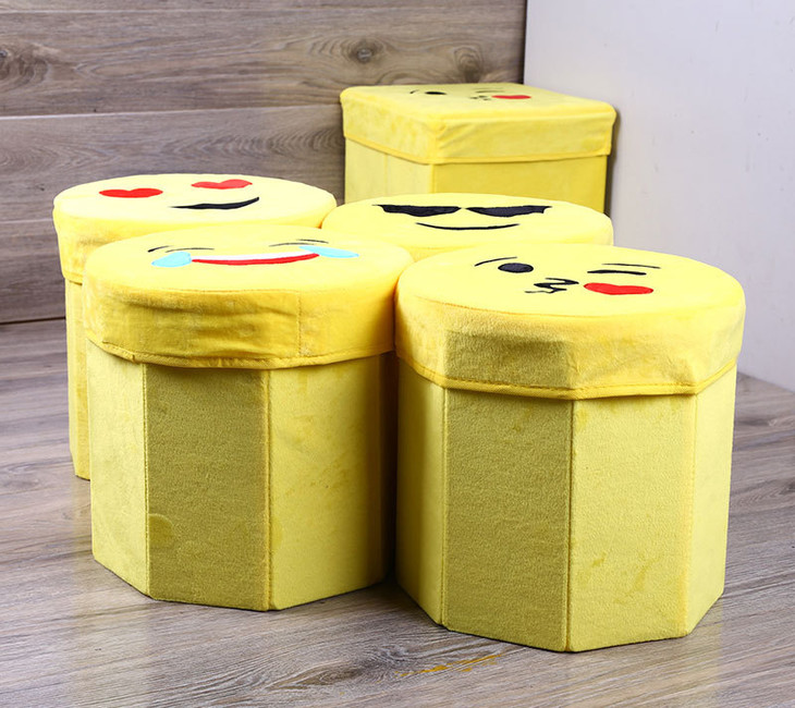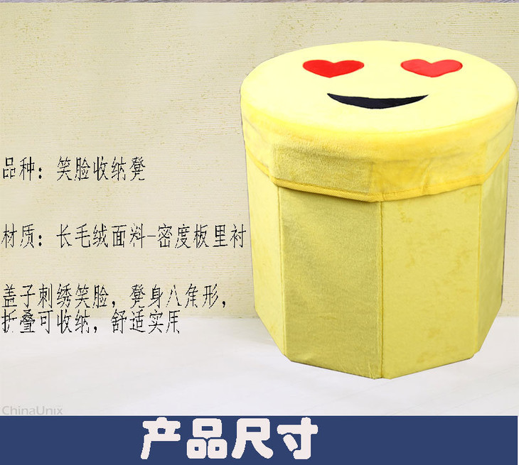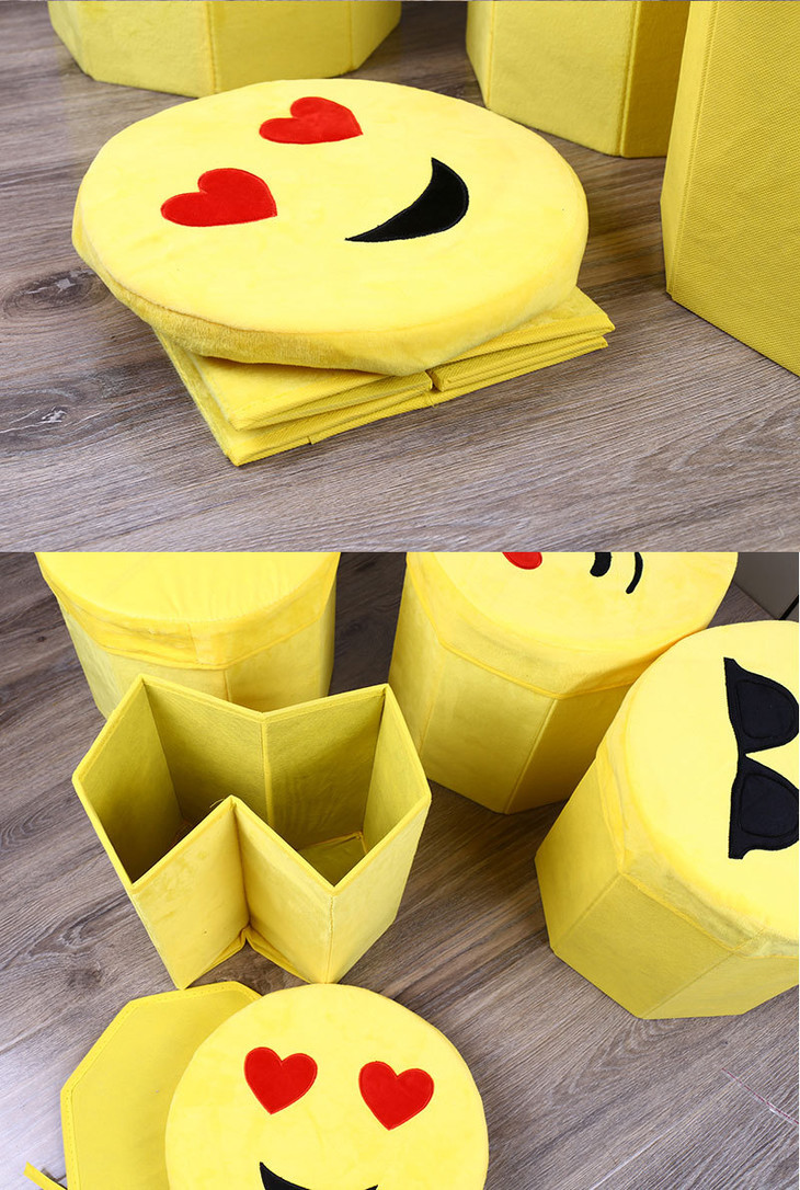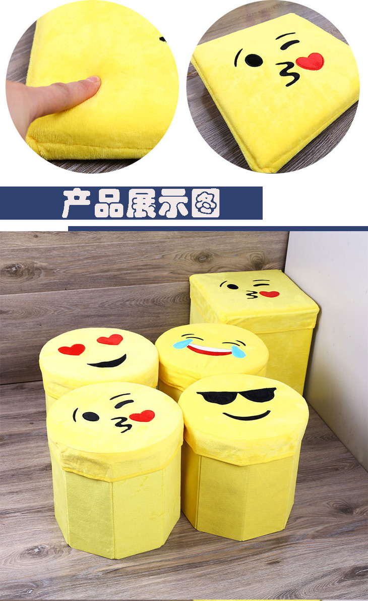 【居家日用】卡通笑脸高仿绒布八角凳 折叠储物凳 收纳凳 玩具儿童凳