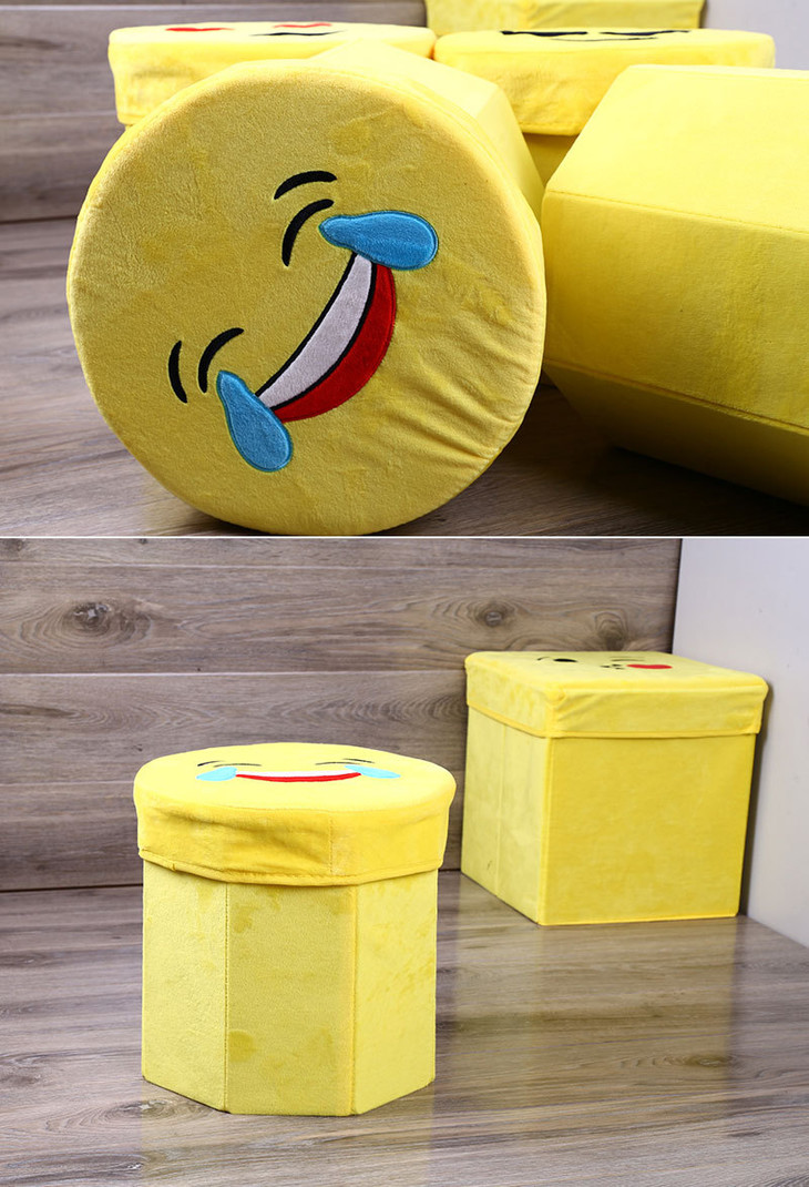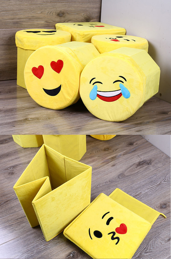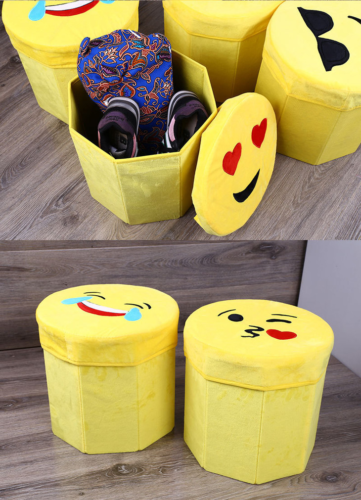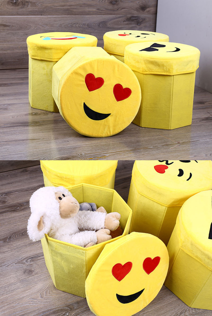 【居家日用】卡通笑脸高仿绒布八角凳 折叠储物凳 收纳凳 玩具儿童凳