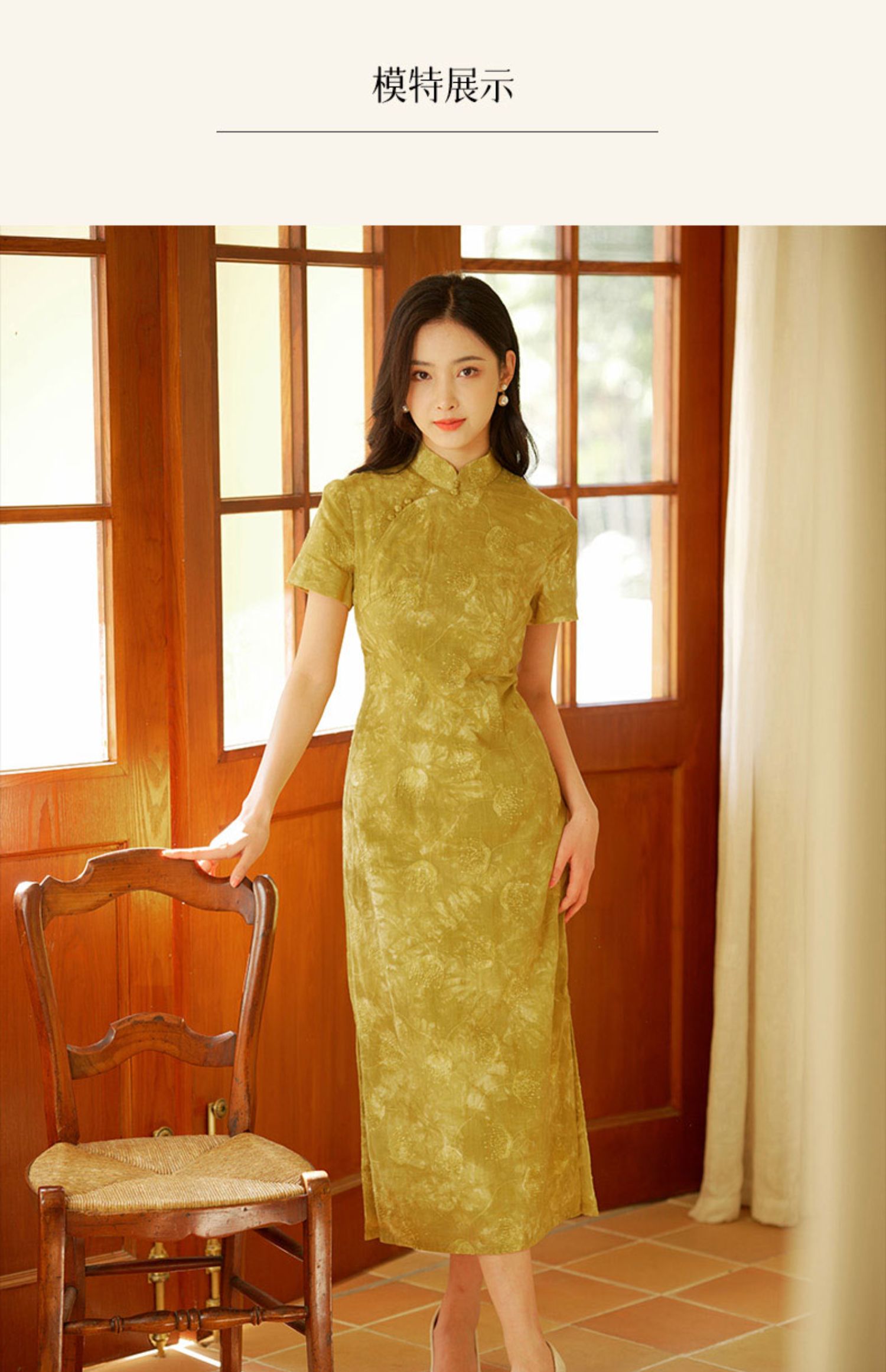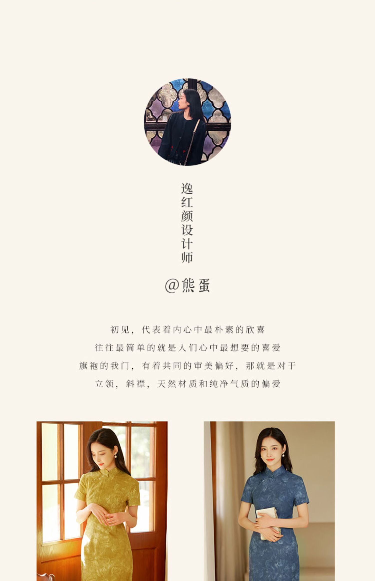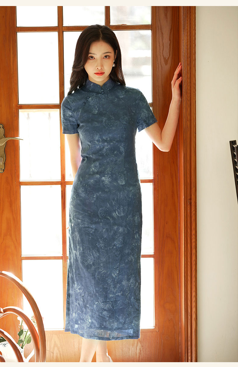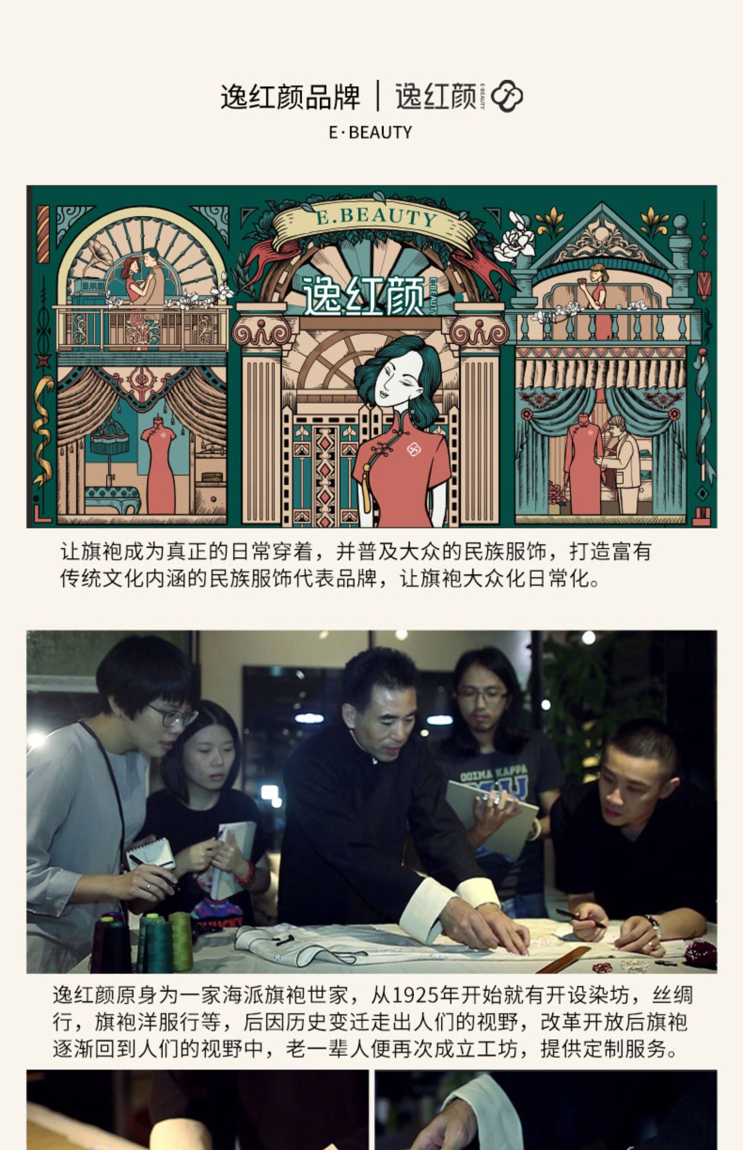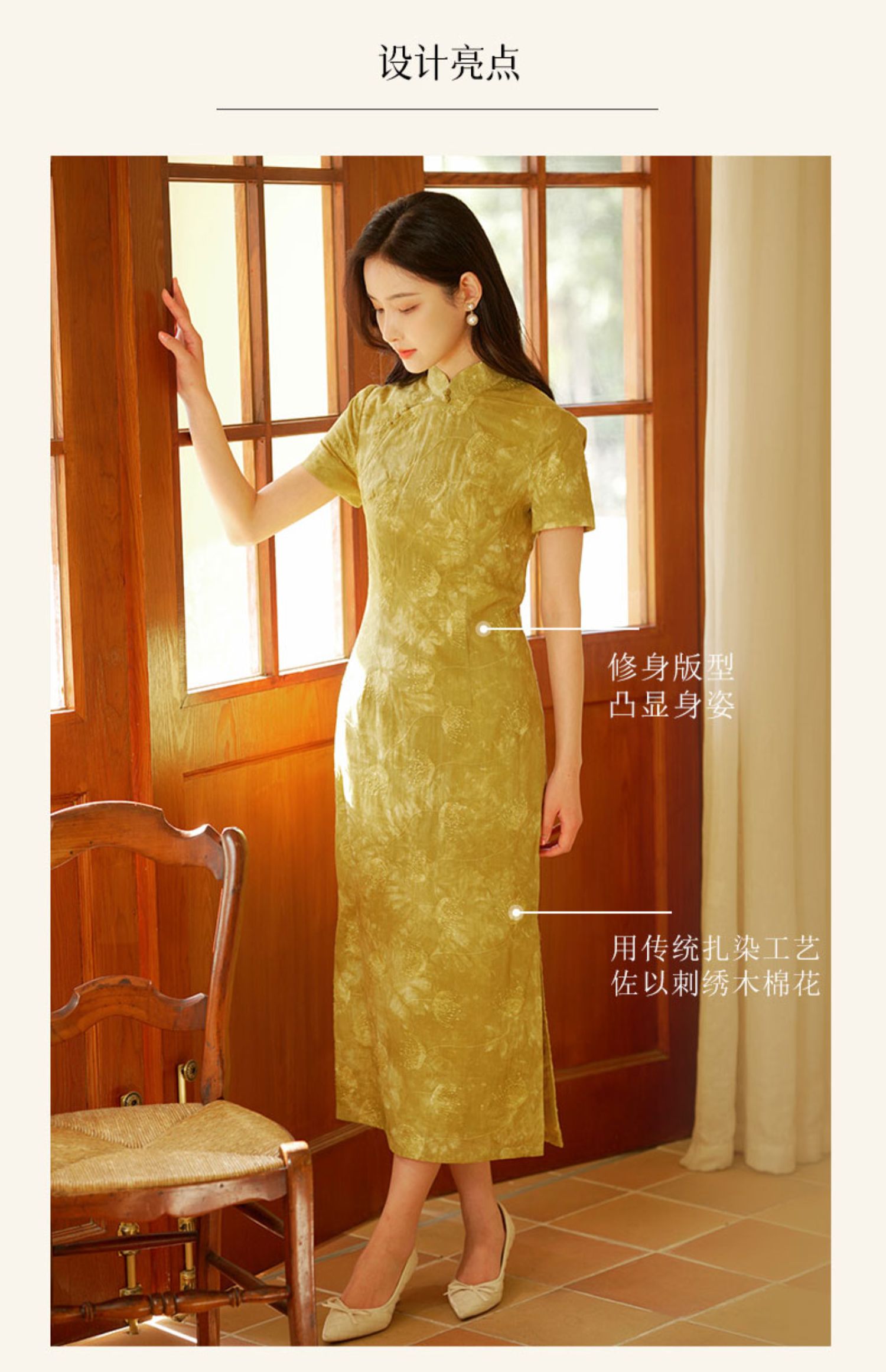 逸红颜箐黛2025旗袍改良版连衣裙女短袖棉旗袍立领斜襟刺绣凌霄花
