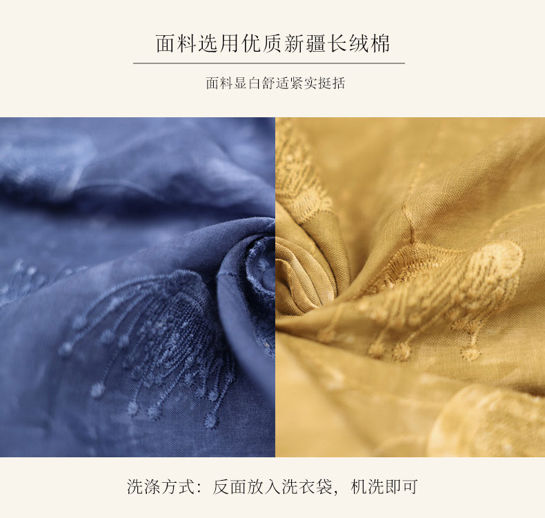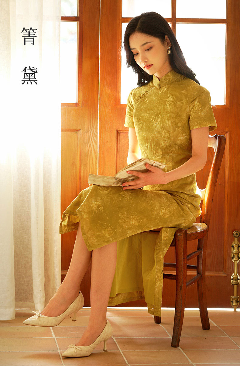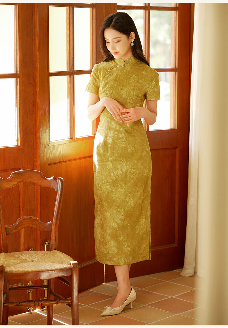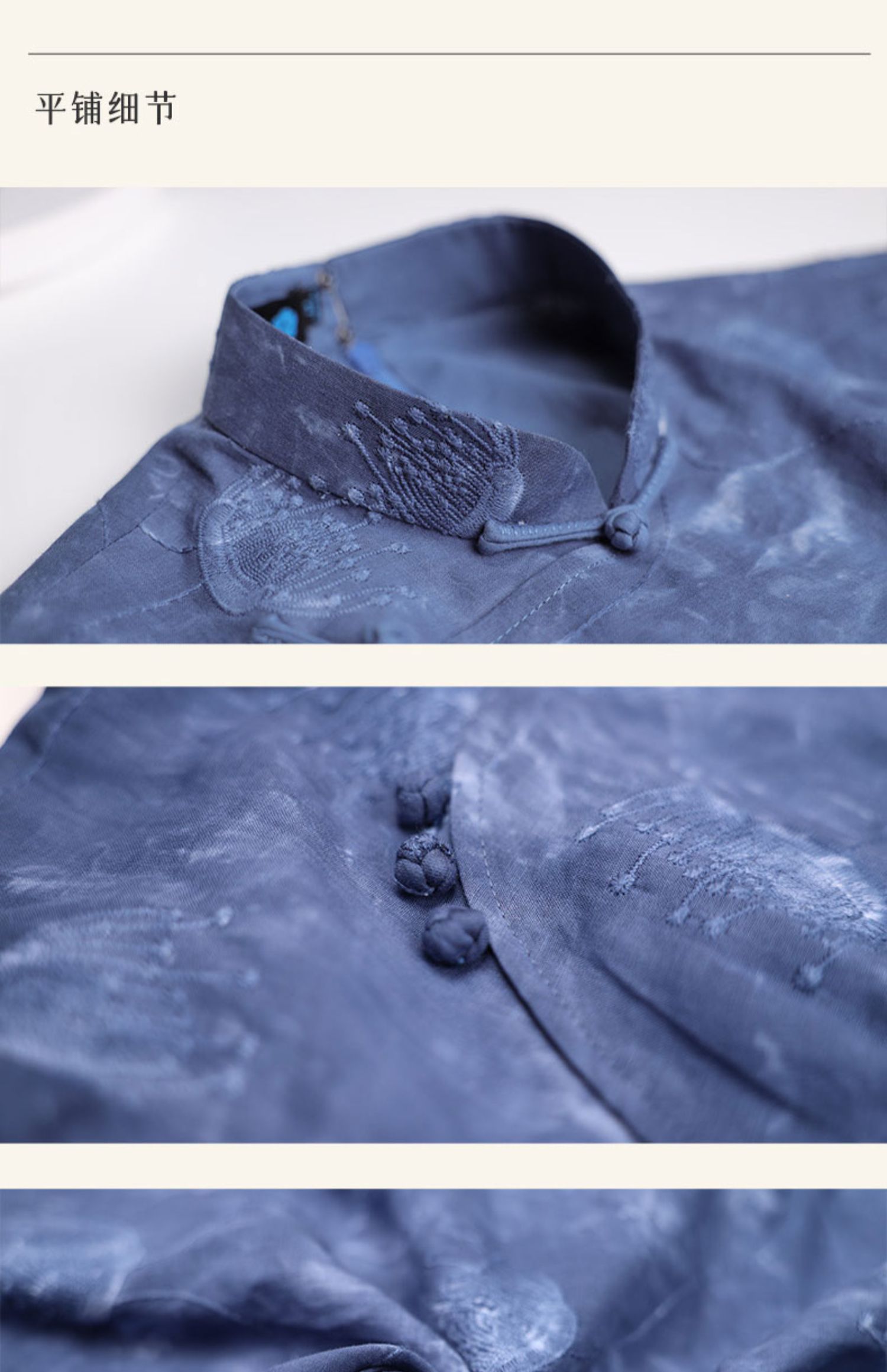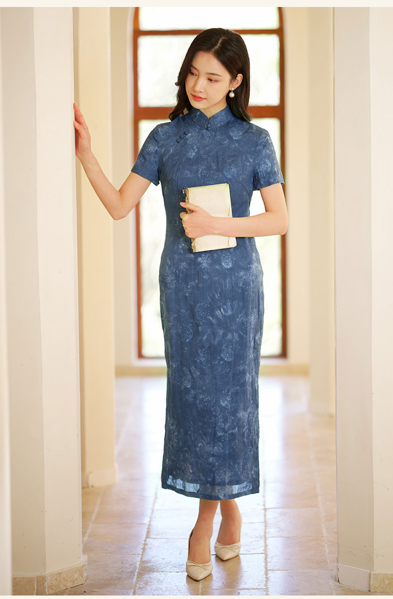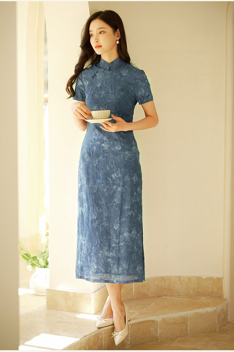逸红颜箐黛2025旗袍改良版连衣裙女短袖棉旗袍立领斜襟刺绣凌霄花