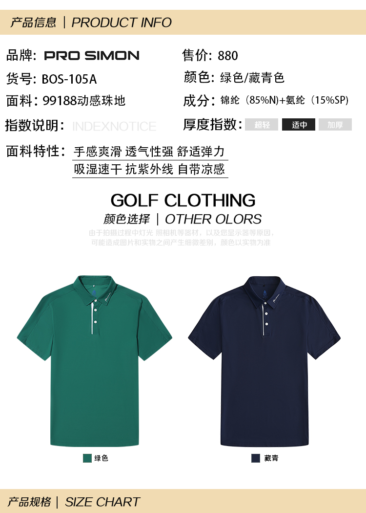 BOS-105A【抗紫外线 吸湿速干】PROSIMON高尔夫春夏男款短袖Polo衫
