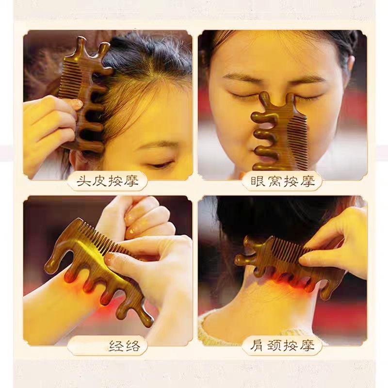天然檀木经络梳 多功能按摩梳子 养生好物