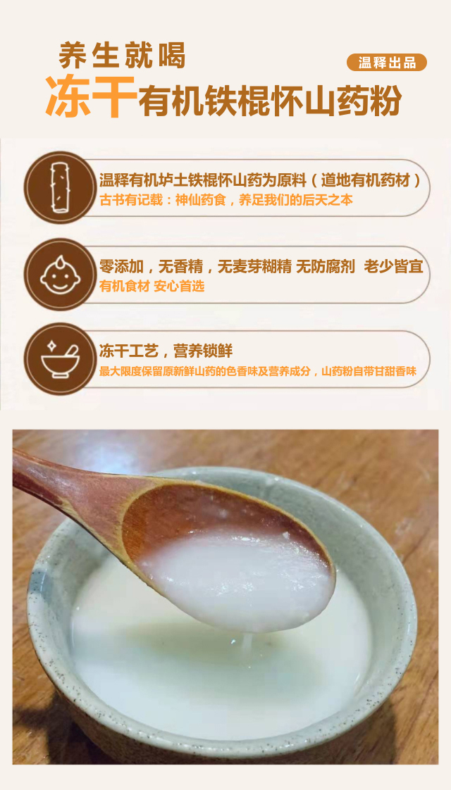 温释有机冻干铁棍山药粉144g盒装(18g*8条)营养冲饮粉