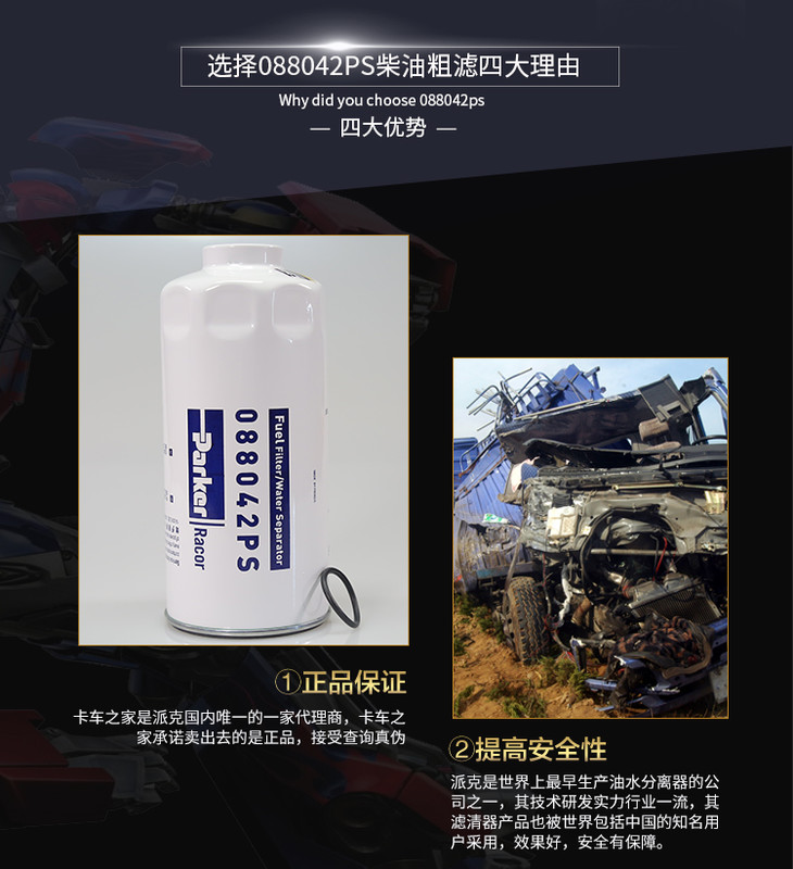 派克088042PS/10微米柴油过滤器一体滤粗滤 玉柴重汽D12用 卡车之家