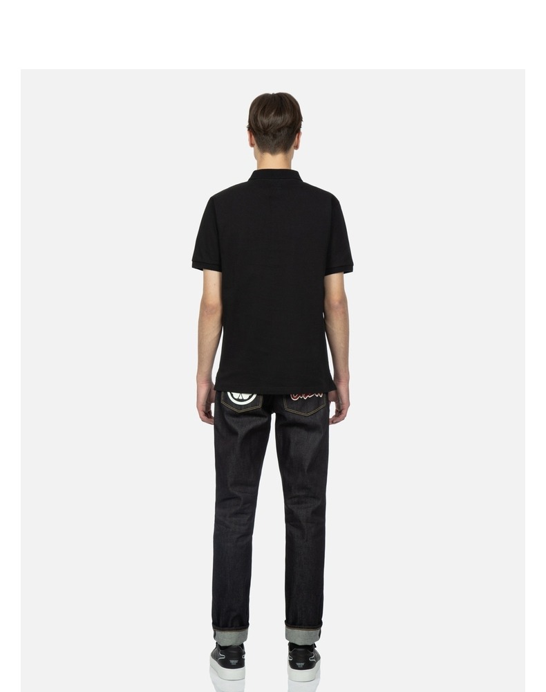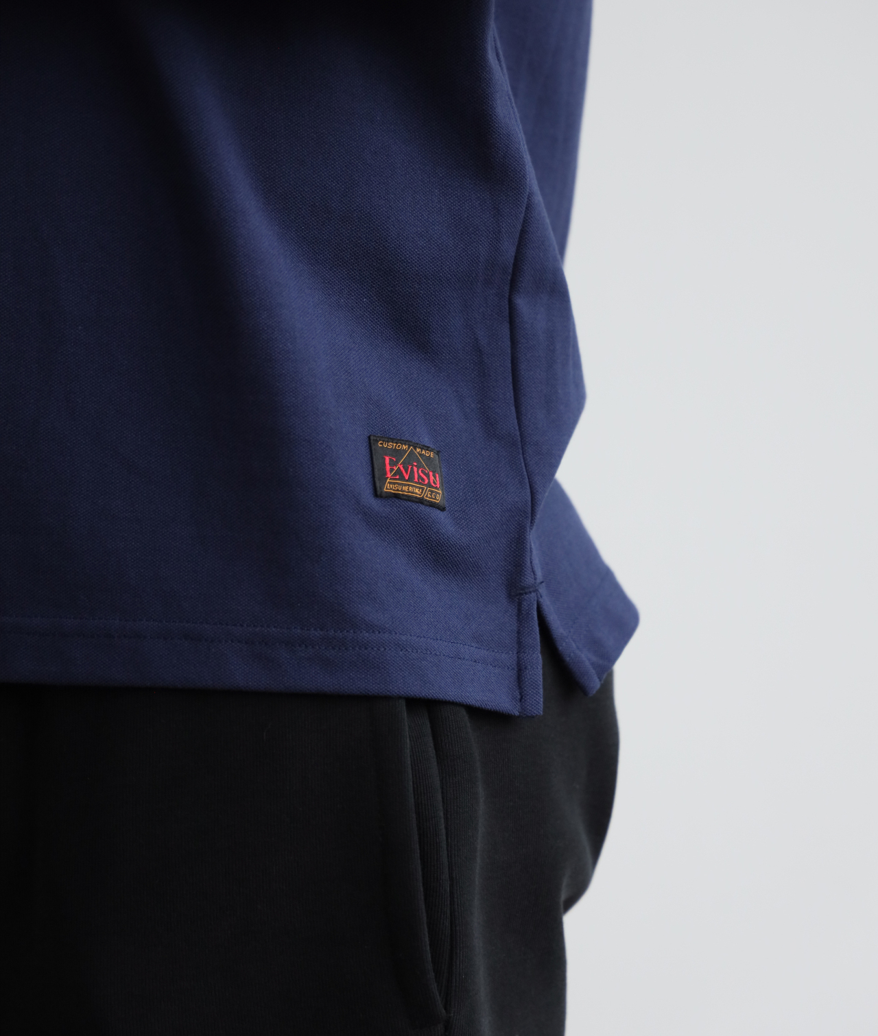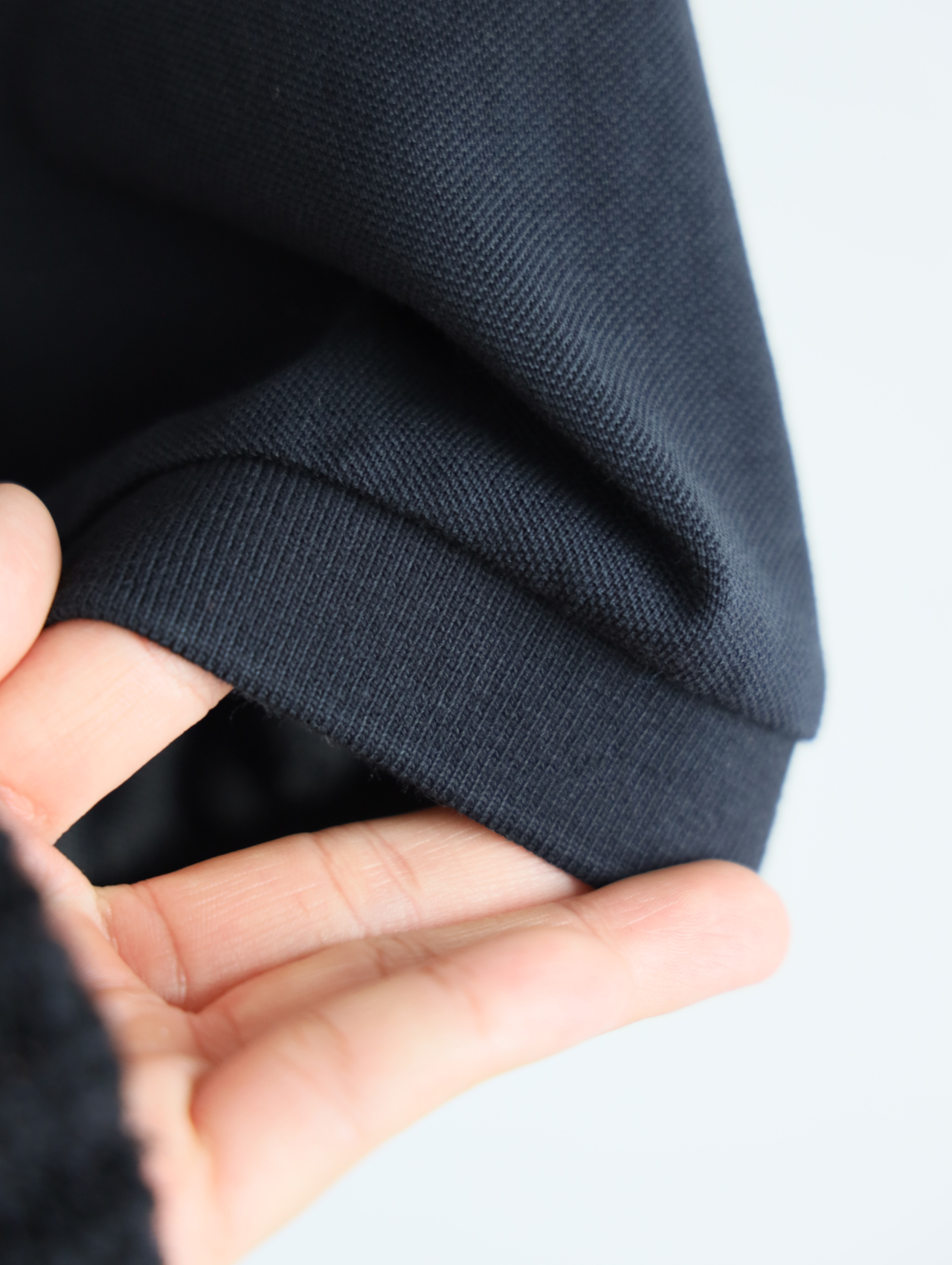 小开叉下摆,缝合套结加固。左侧下摆经典传统定制标签