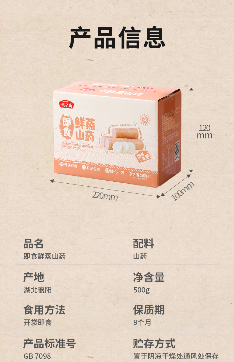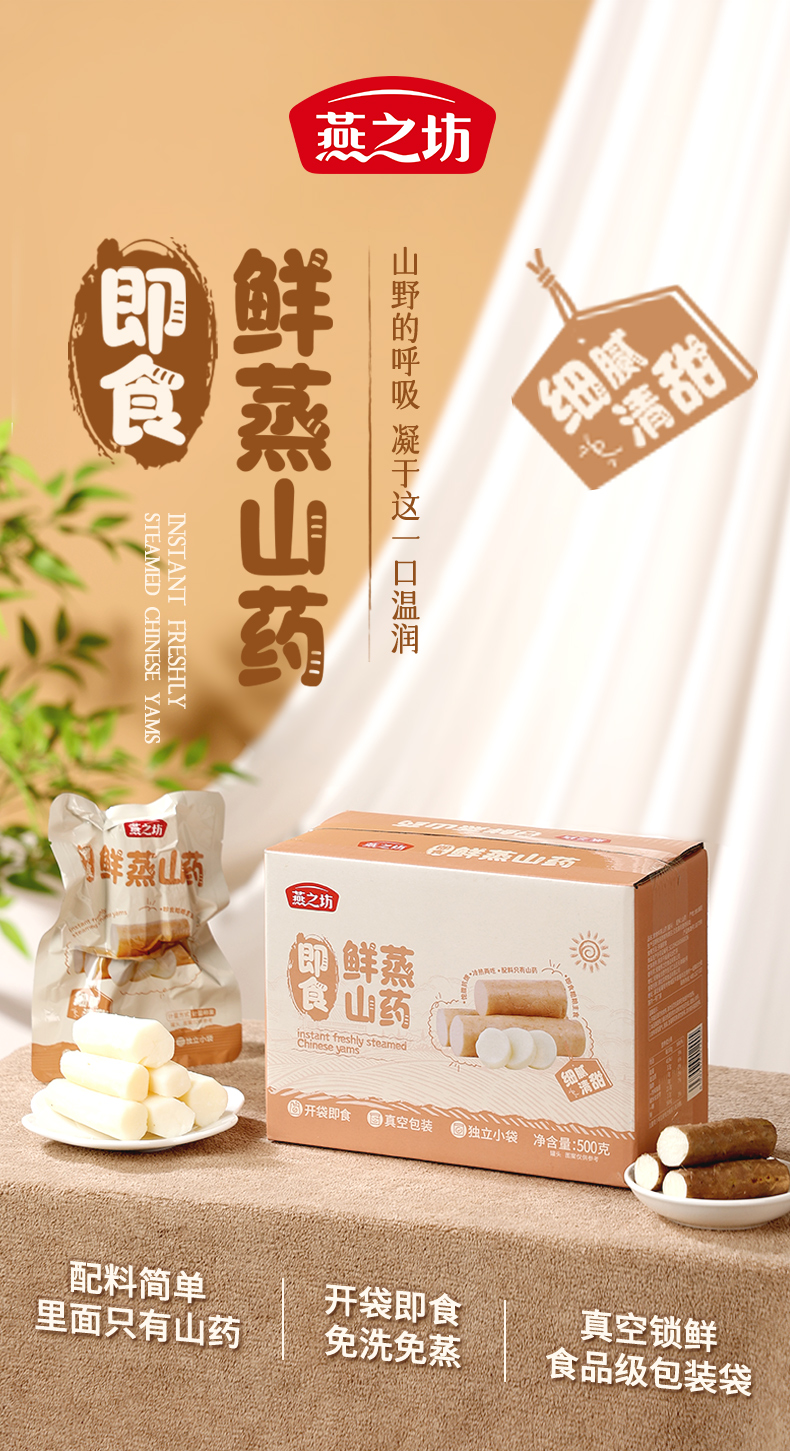 【商城专属】燕之坊即食鲜蒸山药500g