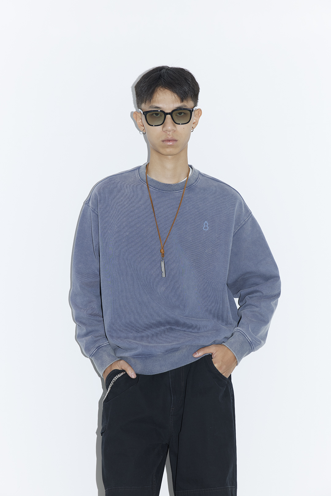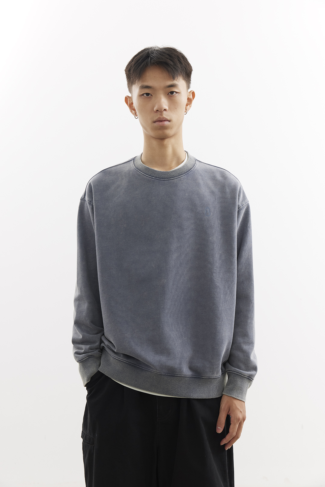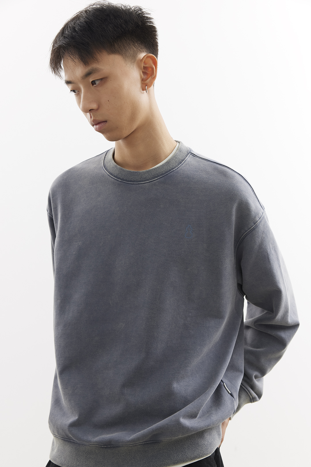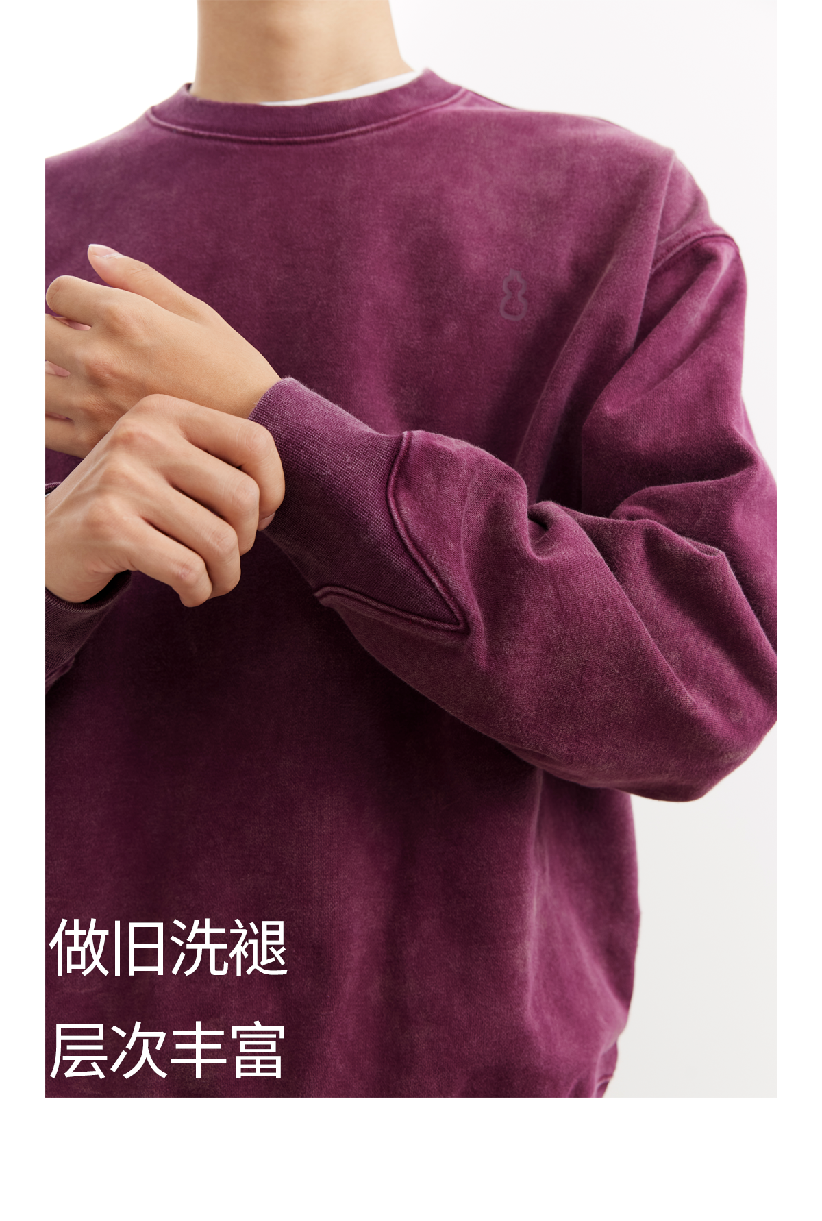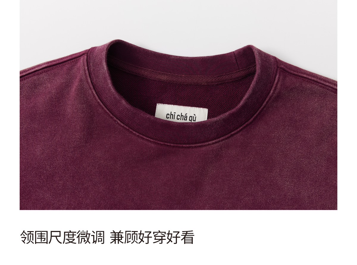 吃茶去chichaqu25重磅洗褪做旧圆领卫衣复古宽松街头休闲运动