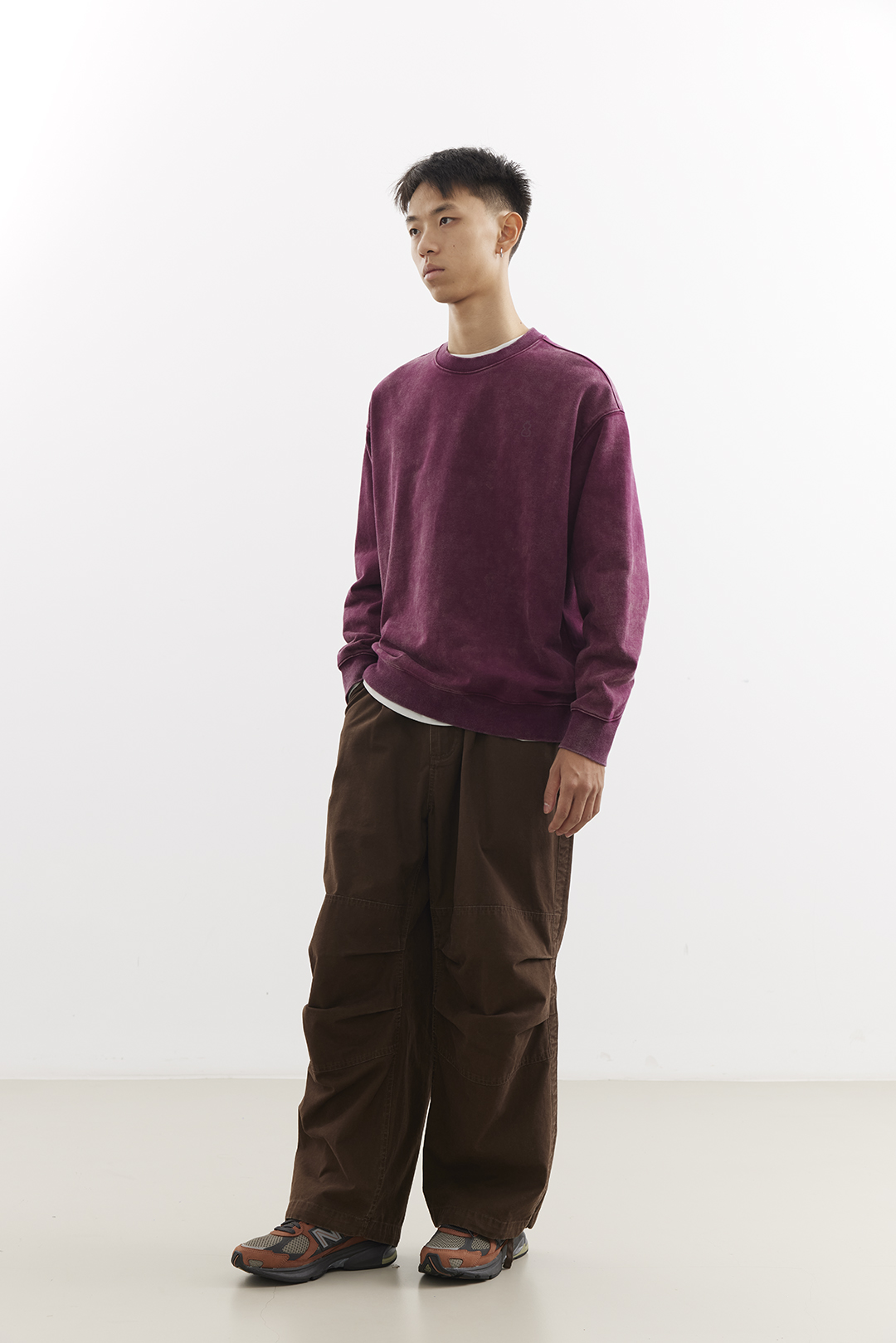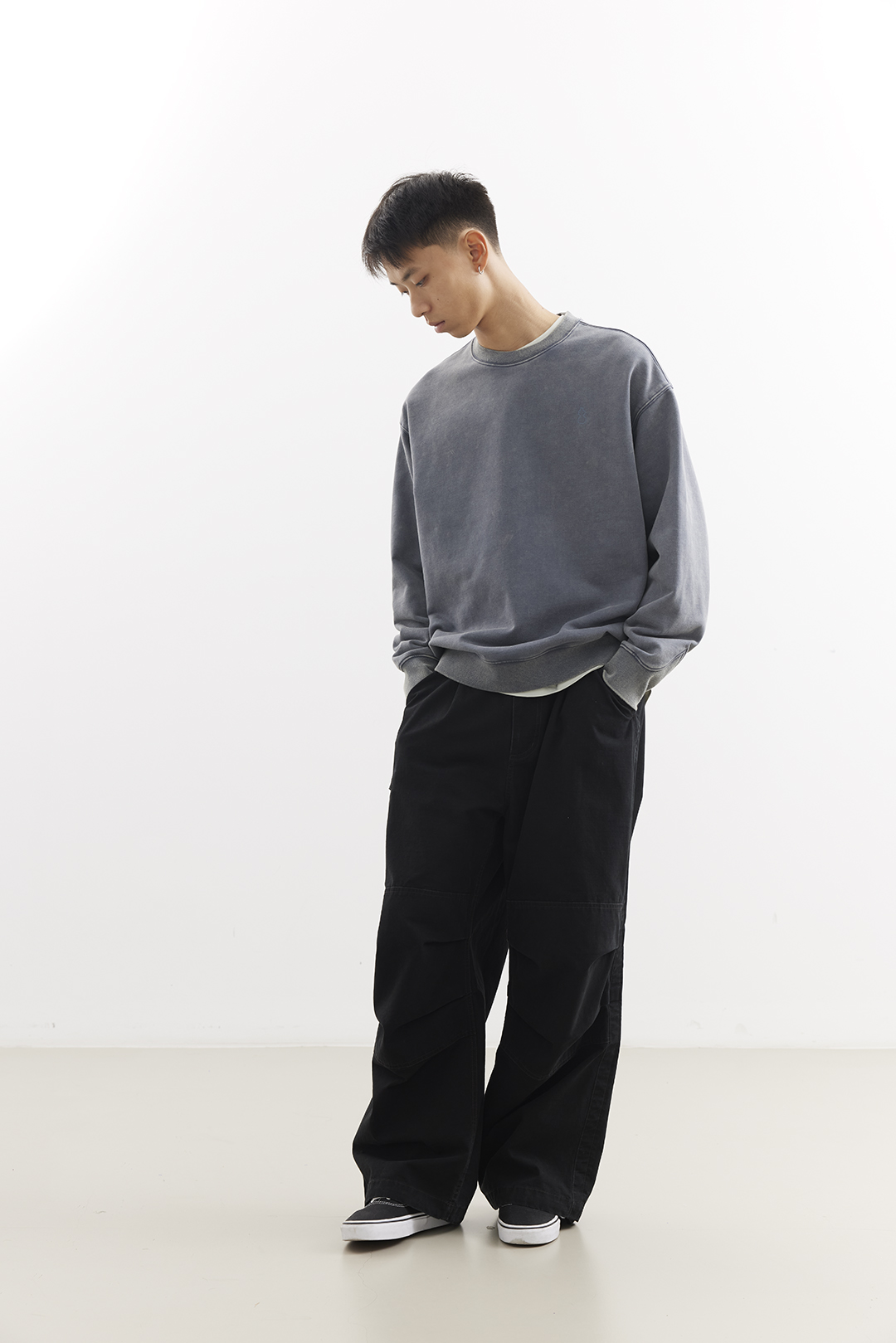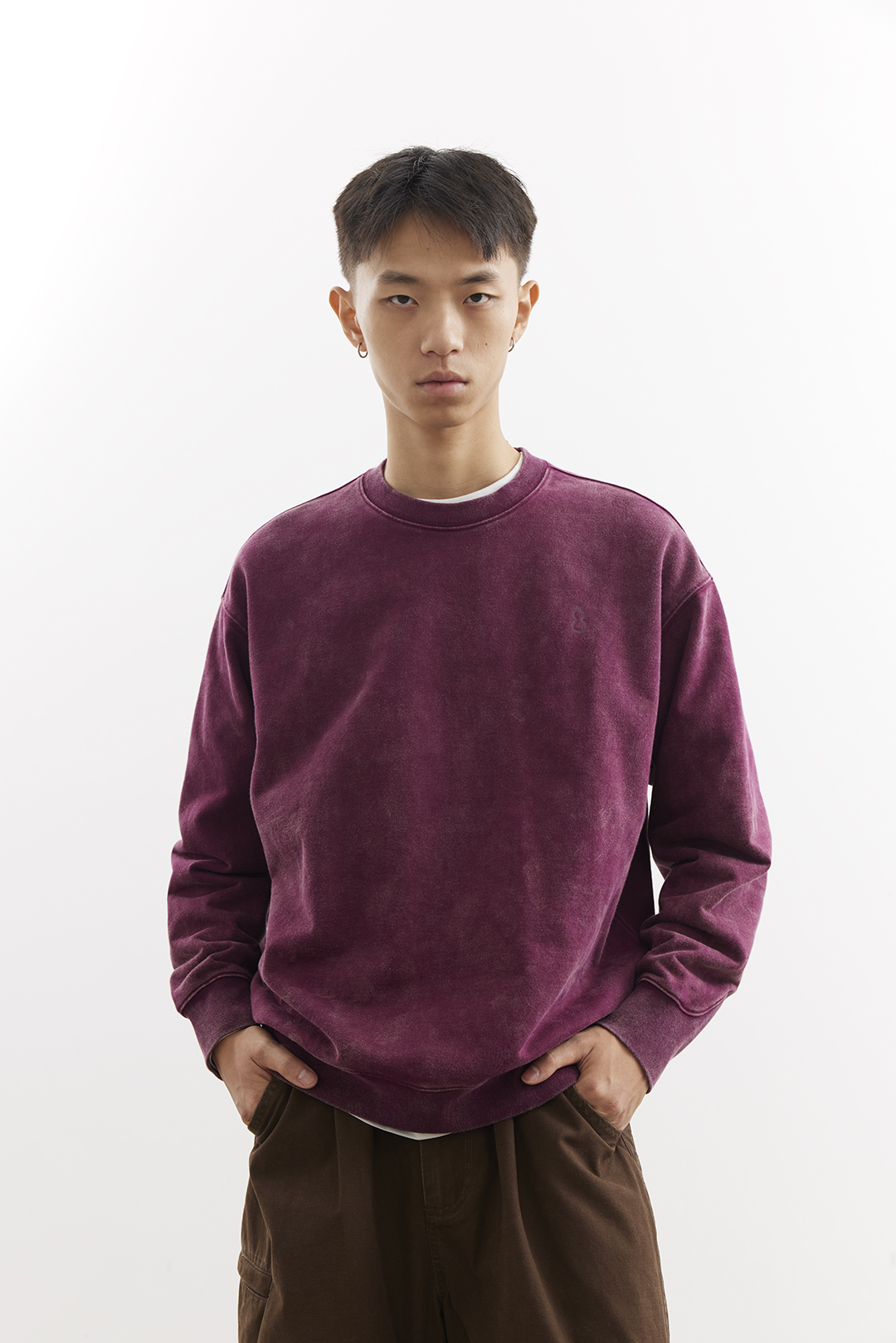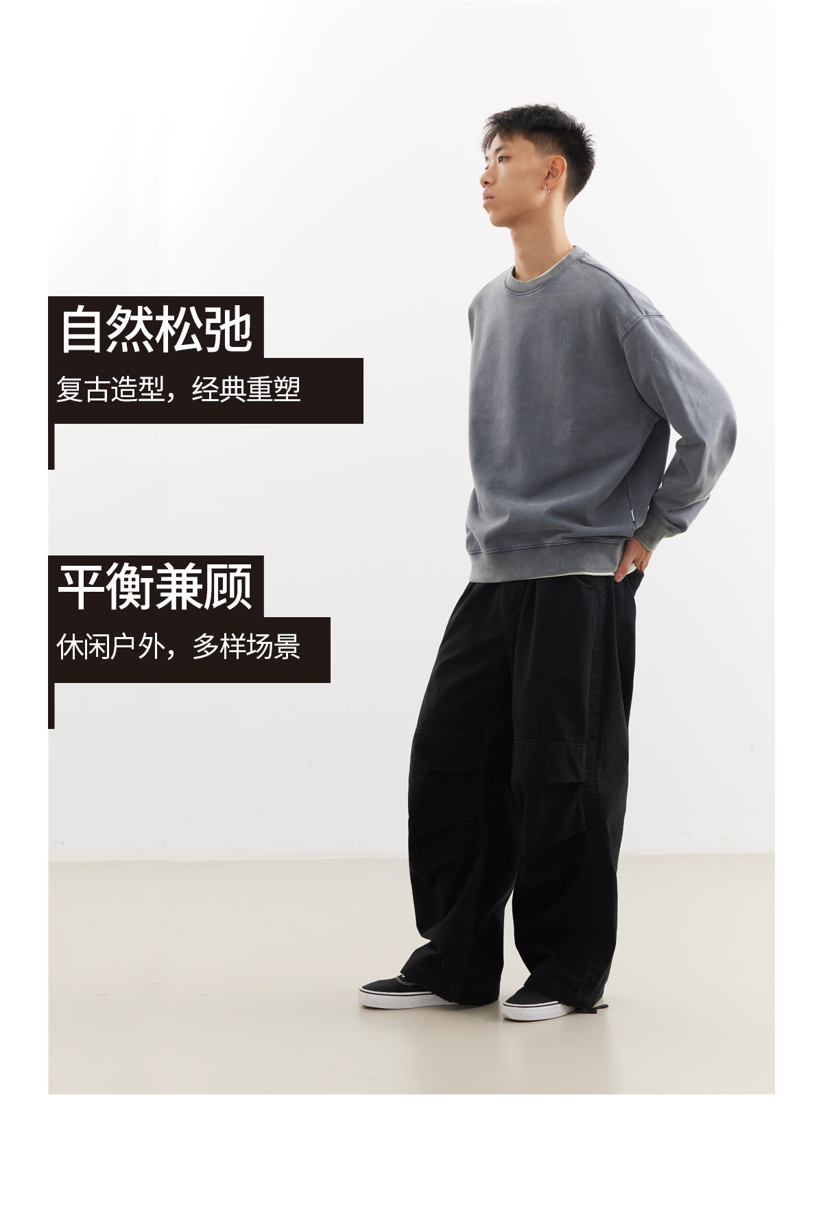 吃茶去chichaqu25重磅洗褪做旧圆领卫衣复古宽松街头休闲运动