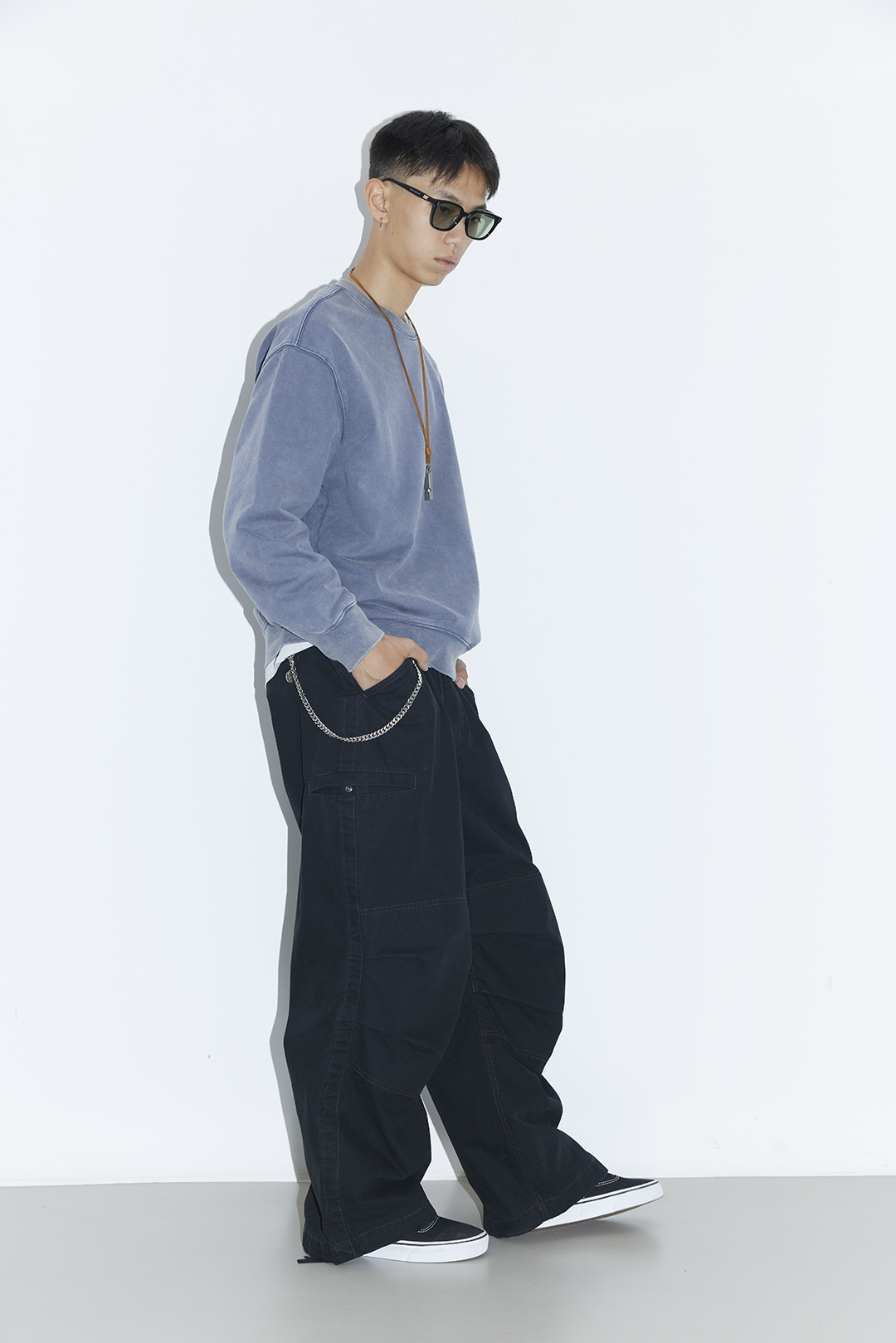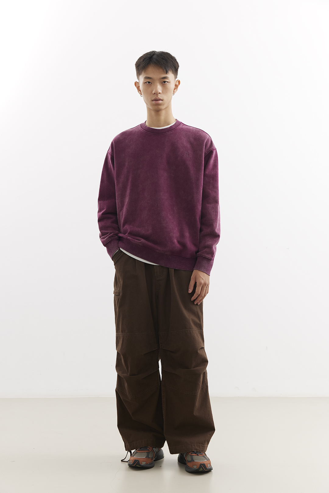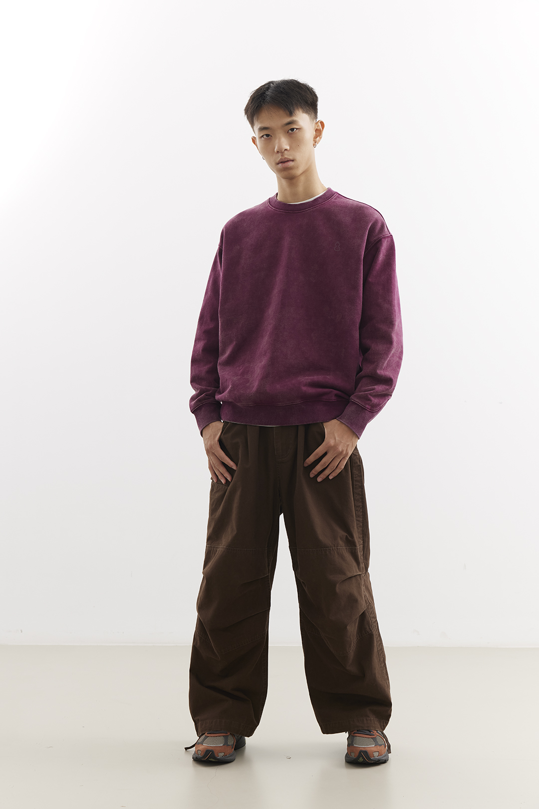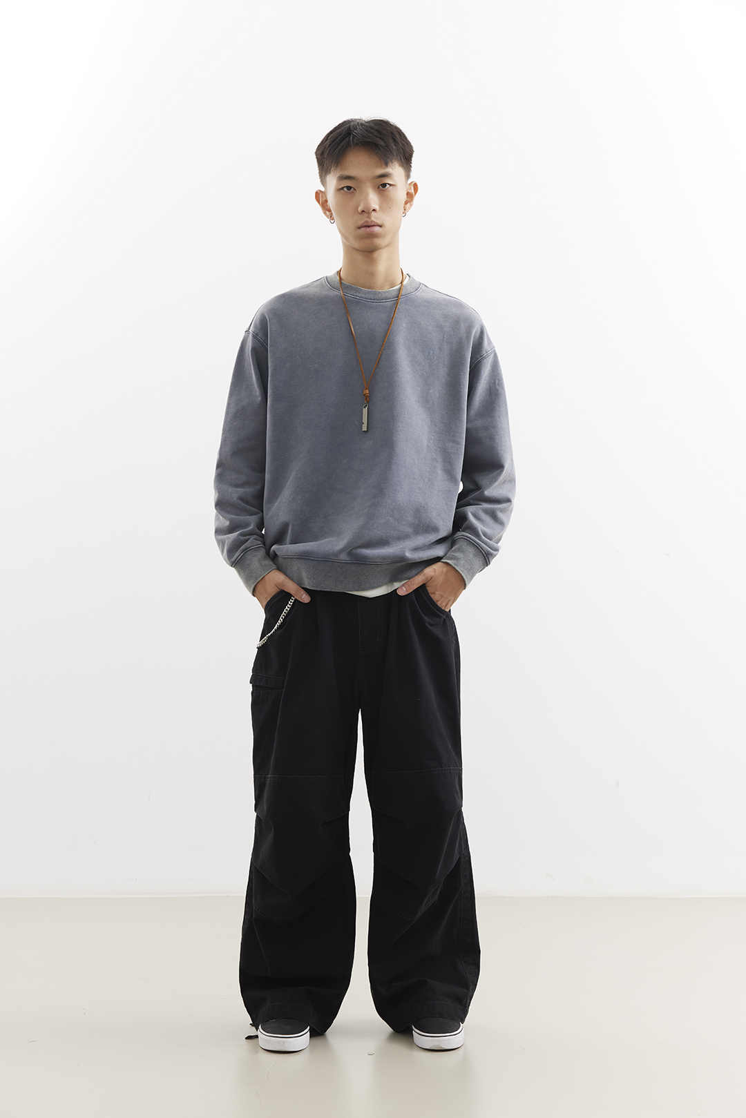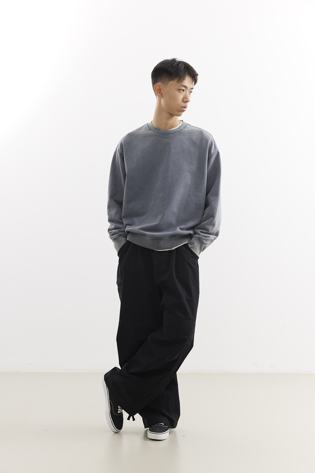 吃茶去chichaqu25重磅洗褪做旧圆领卫衣复古宽松街头休闲运动