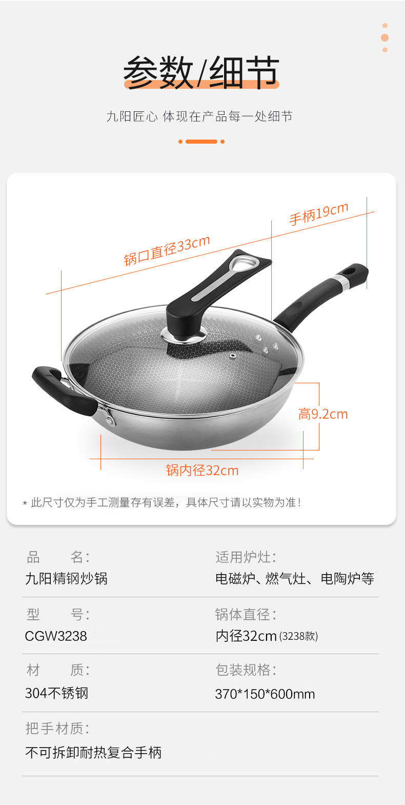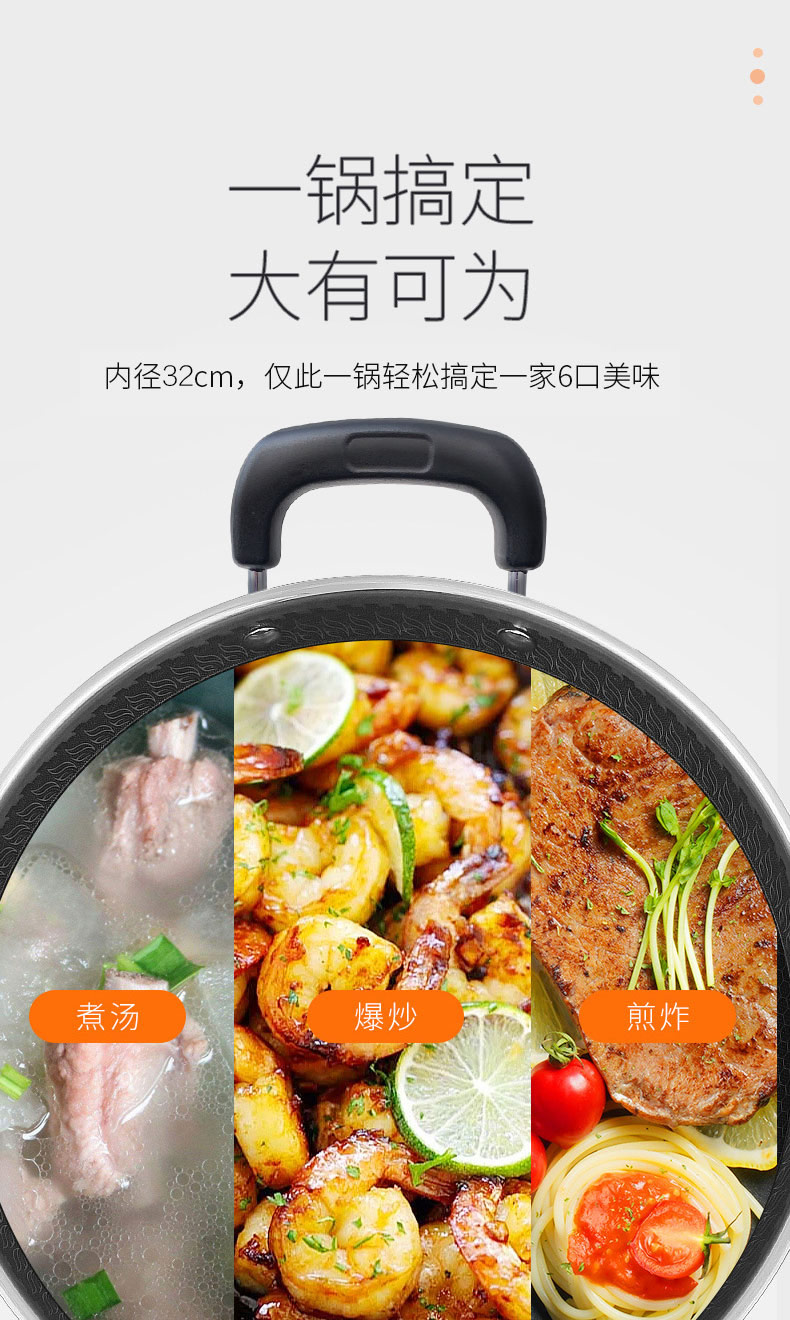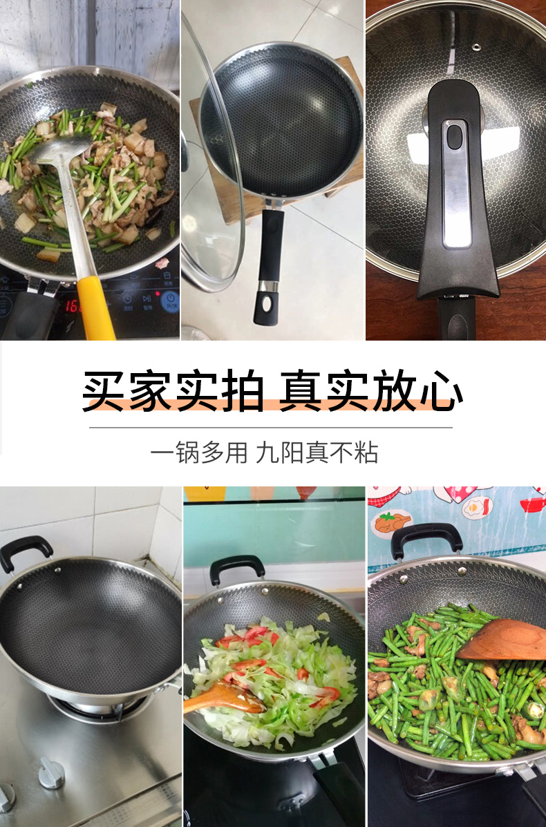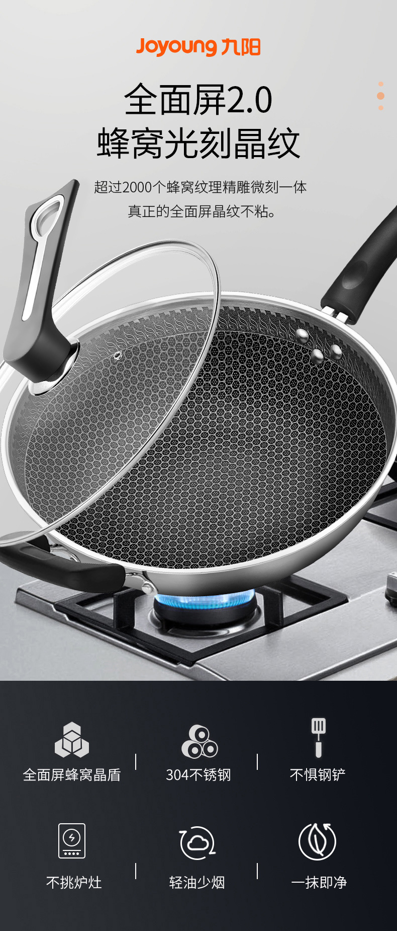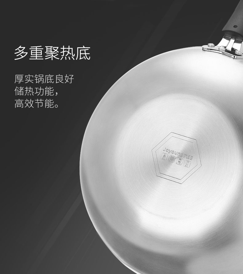 Joyoung九阳CGW3238复合钢晶钢不粘炒锅家用不锈钢燃磁通用炒菜锅