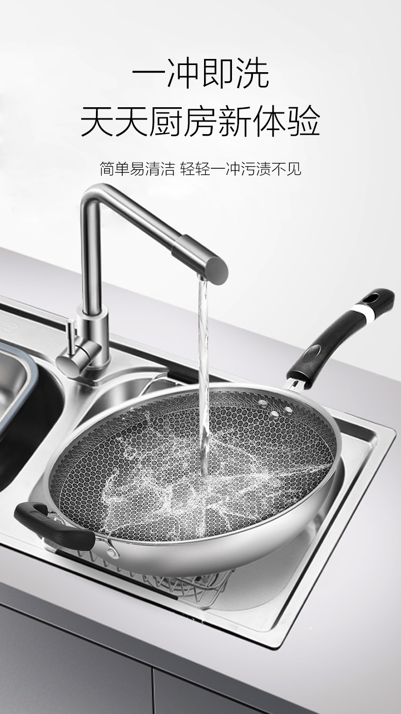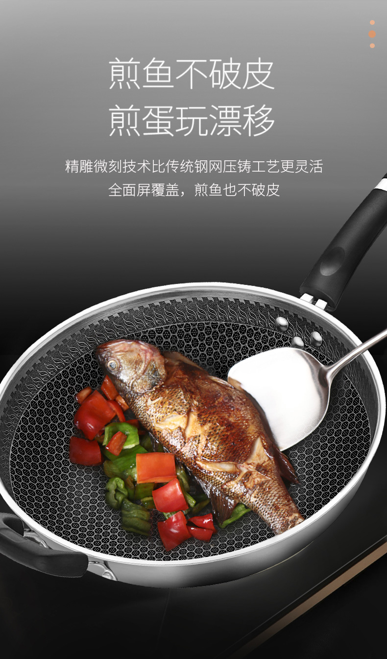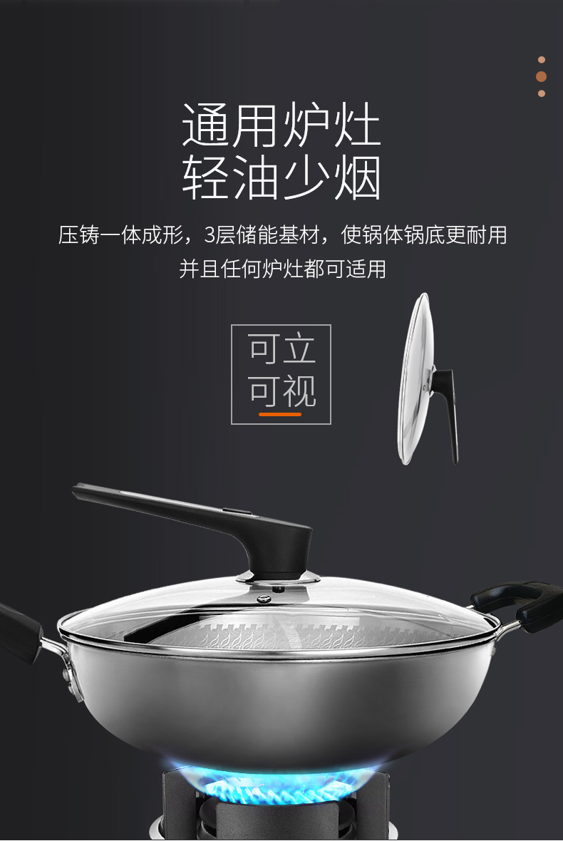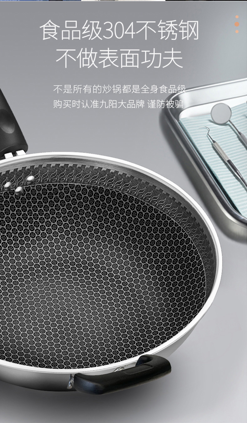Joyoung九阳CGW3238复合钢晶钢不粘炒锅家用不锈钢燃磁通用炒菜锅